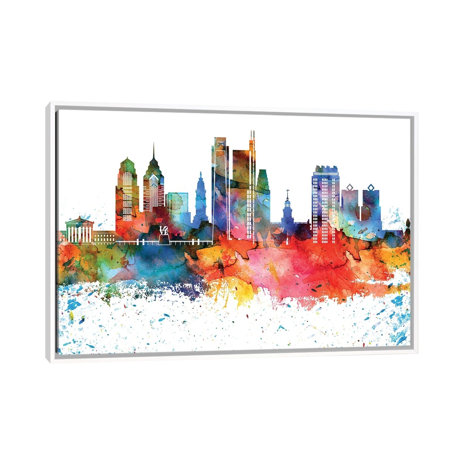 iCanvas "Philadelphia Colorful Watercolor Skyline" by WallDecorAddict Framed Canvas Print