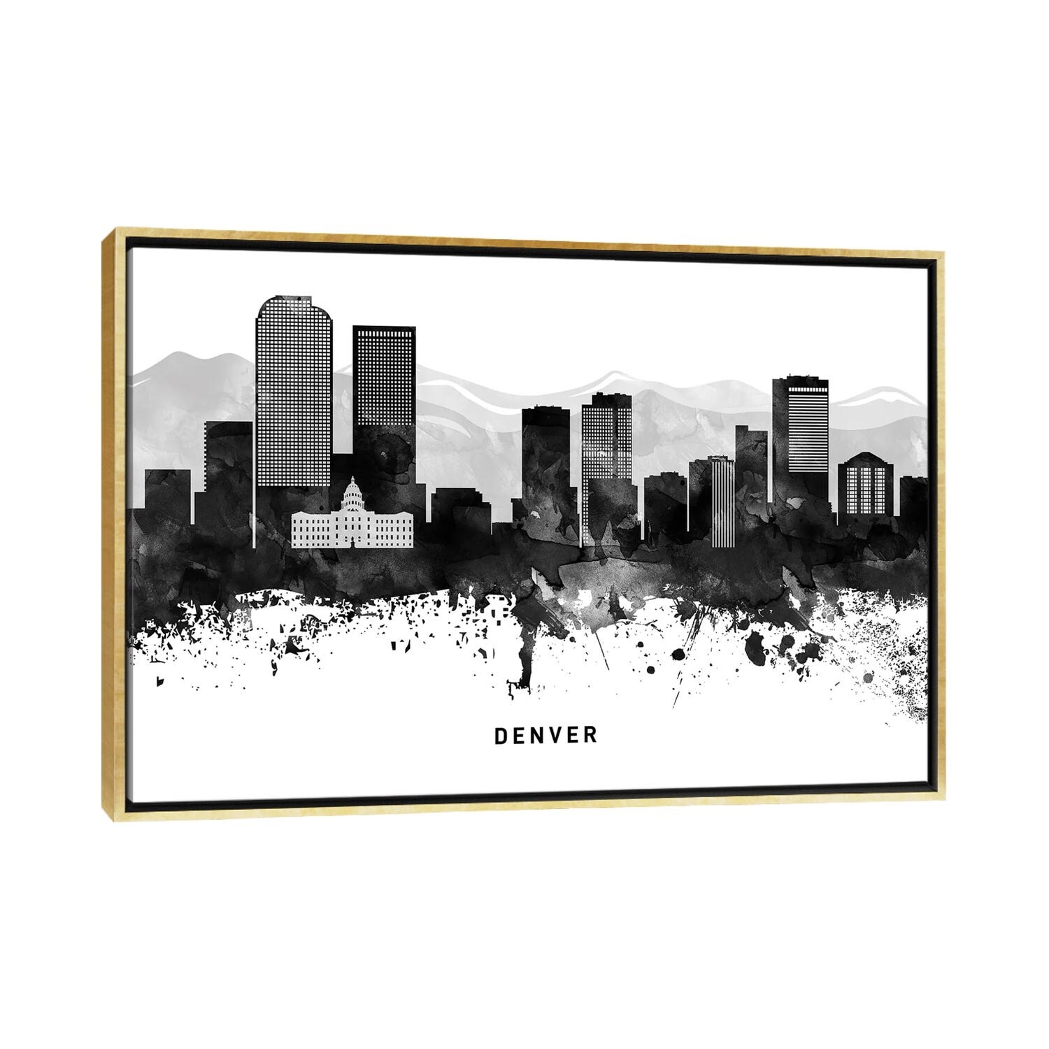 iCanvas "Denver Skyline Black & White" by WallDecorAddict Framed Canvas Print