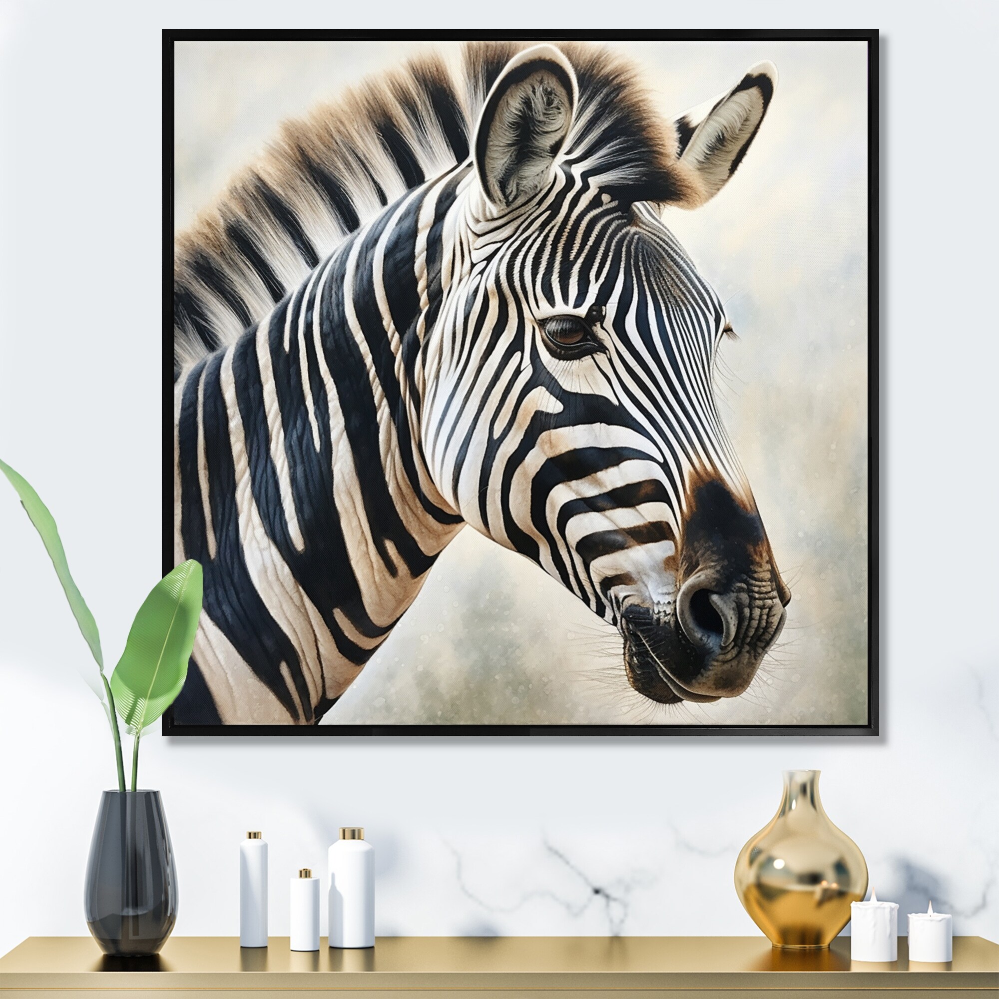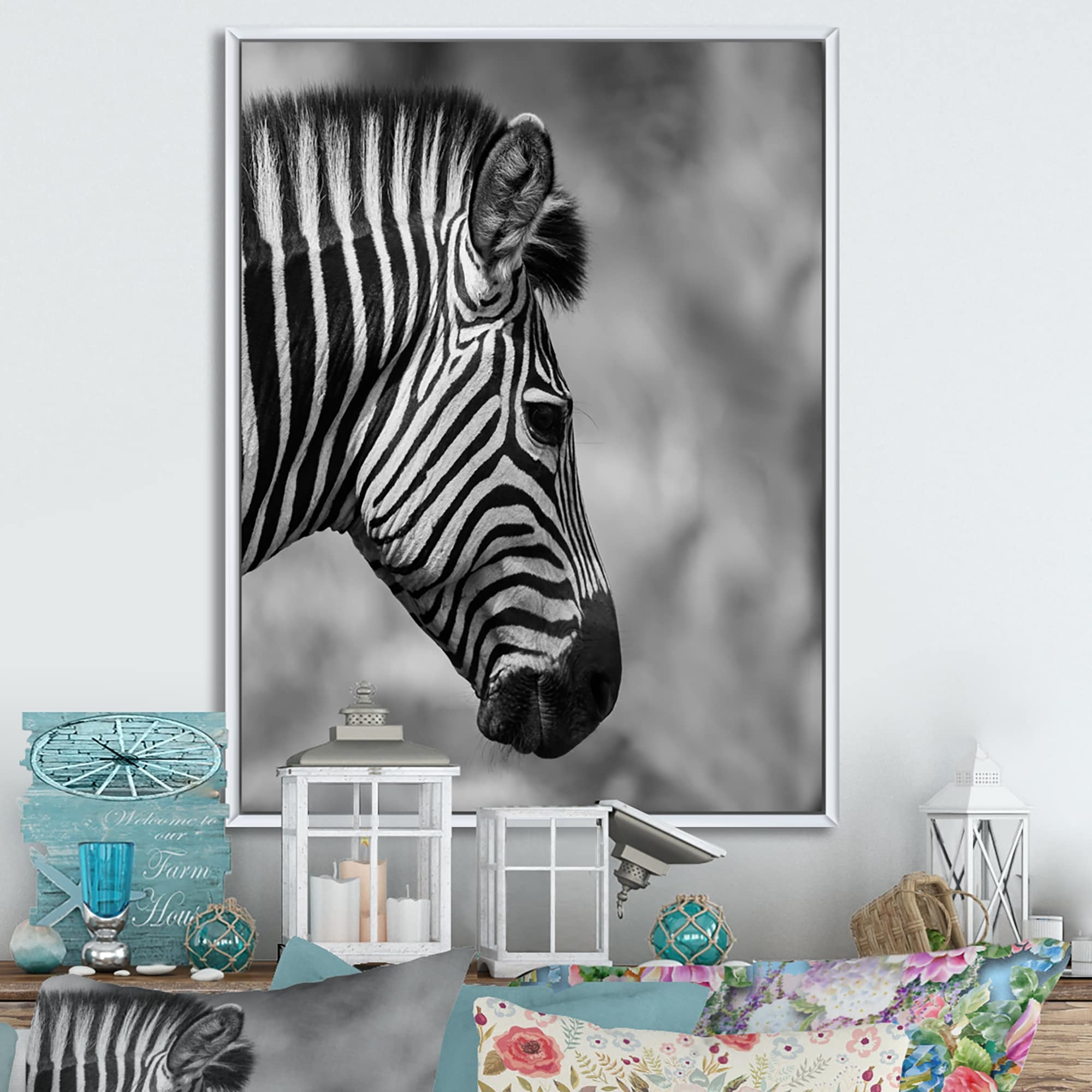 Designart "African Zebra Head in Black And White" Traditional Framed Canvas artwork
