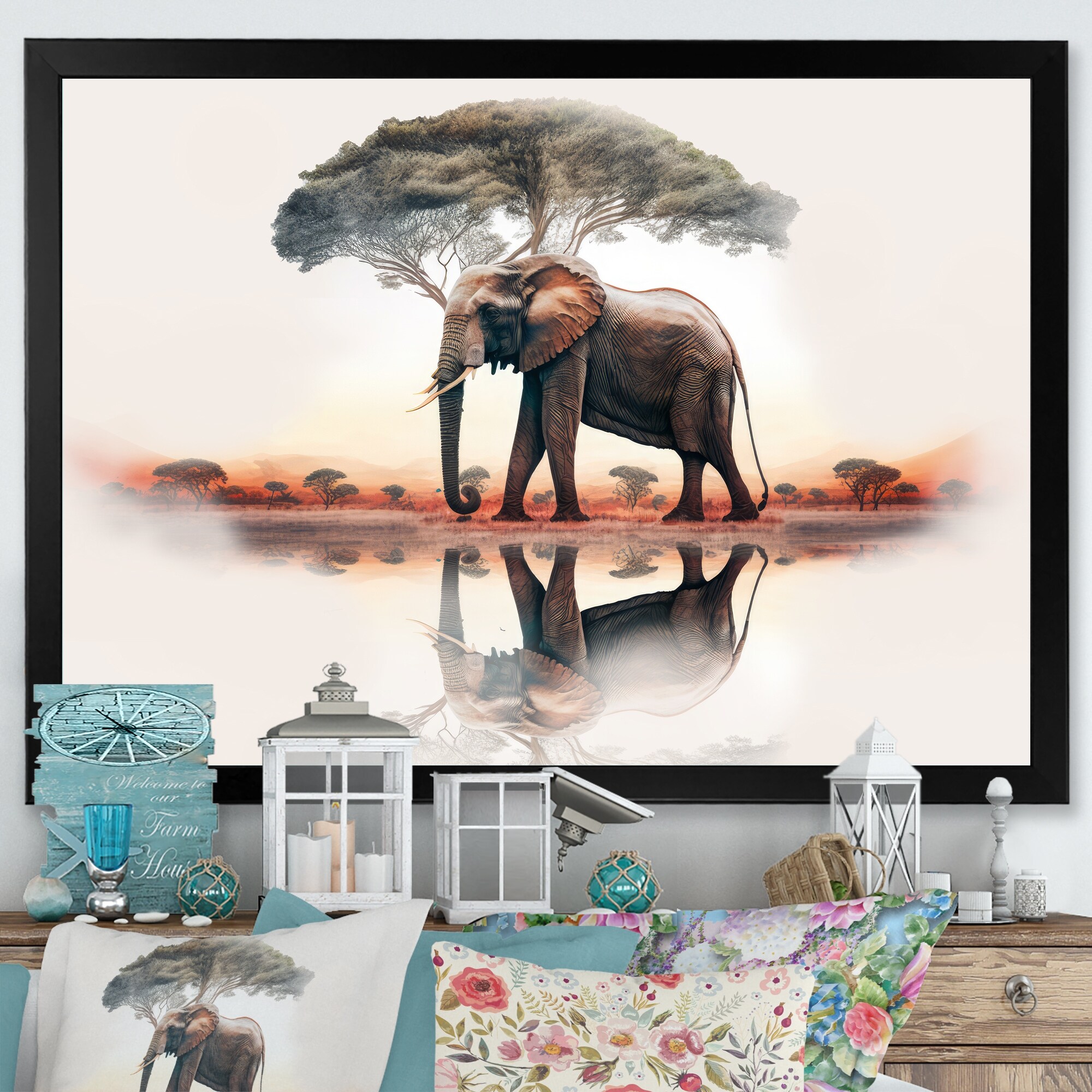 Designart "Double Exposure of a Elefant With African Landscape II" Modern Framed Art Print