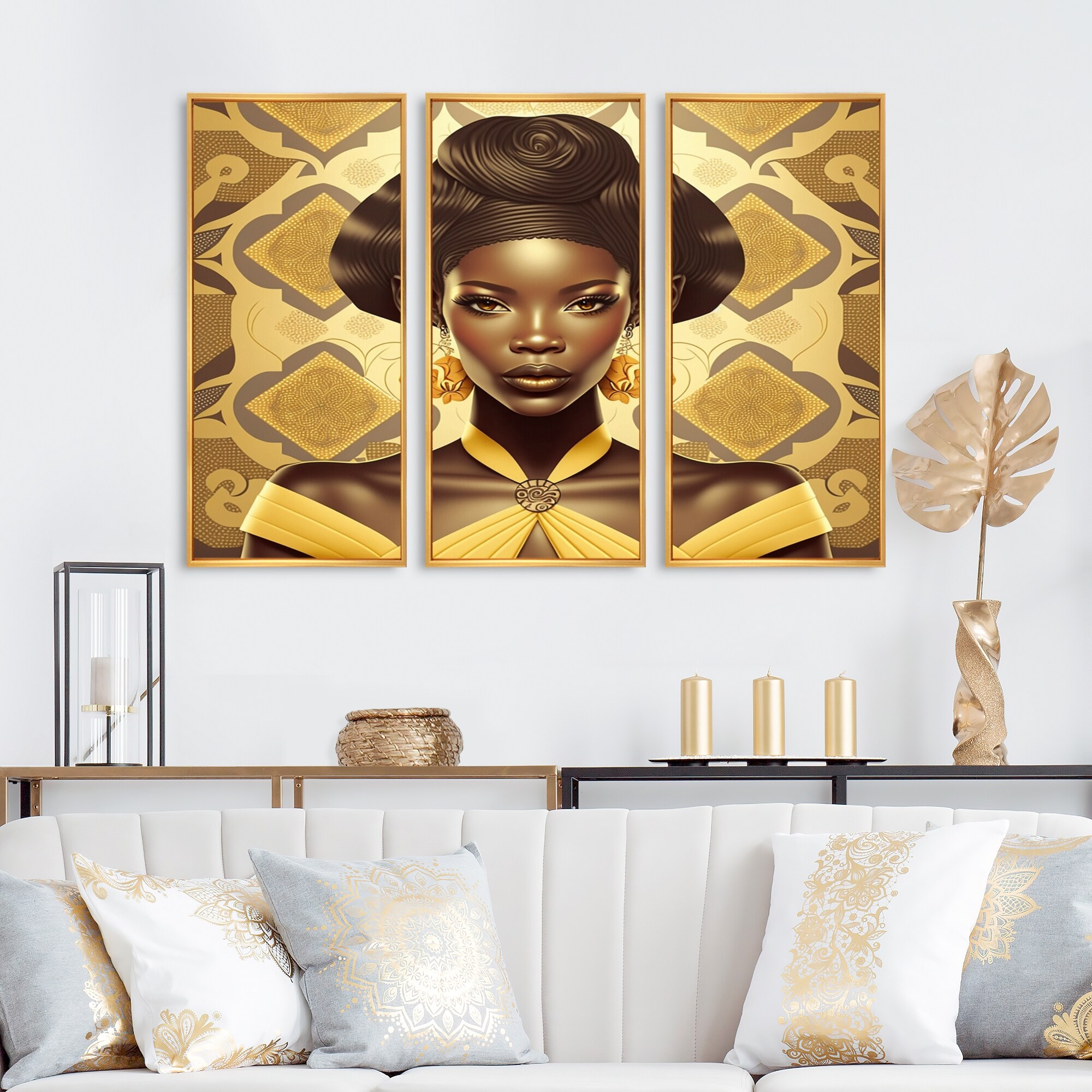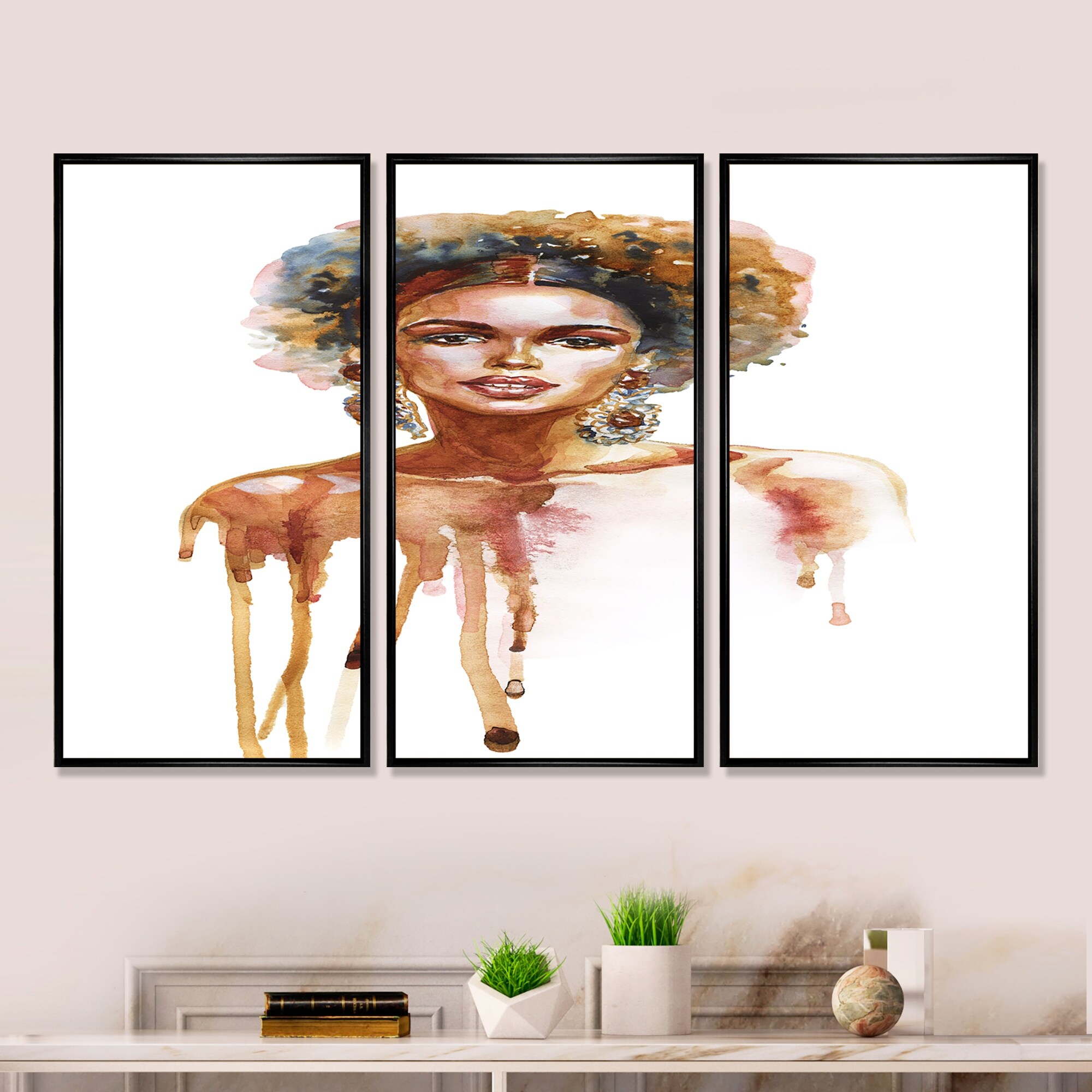 Designart "Portrait of African American Woman XIII" Modern Framed Canvas Wall Art Print Set of 3 - 4 Colors of Frames
