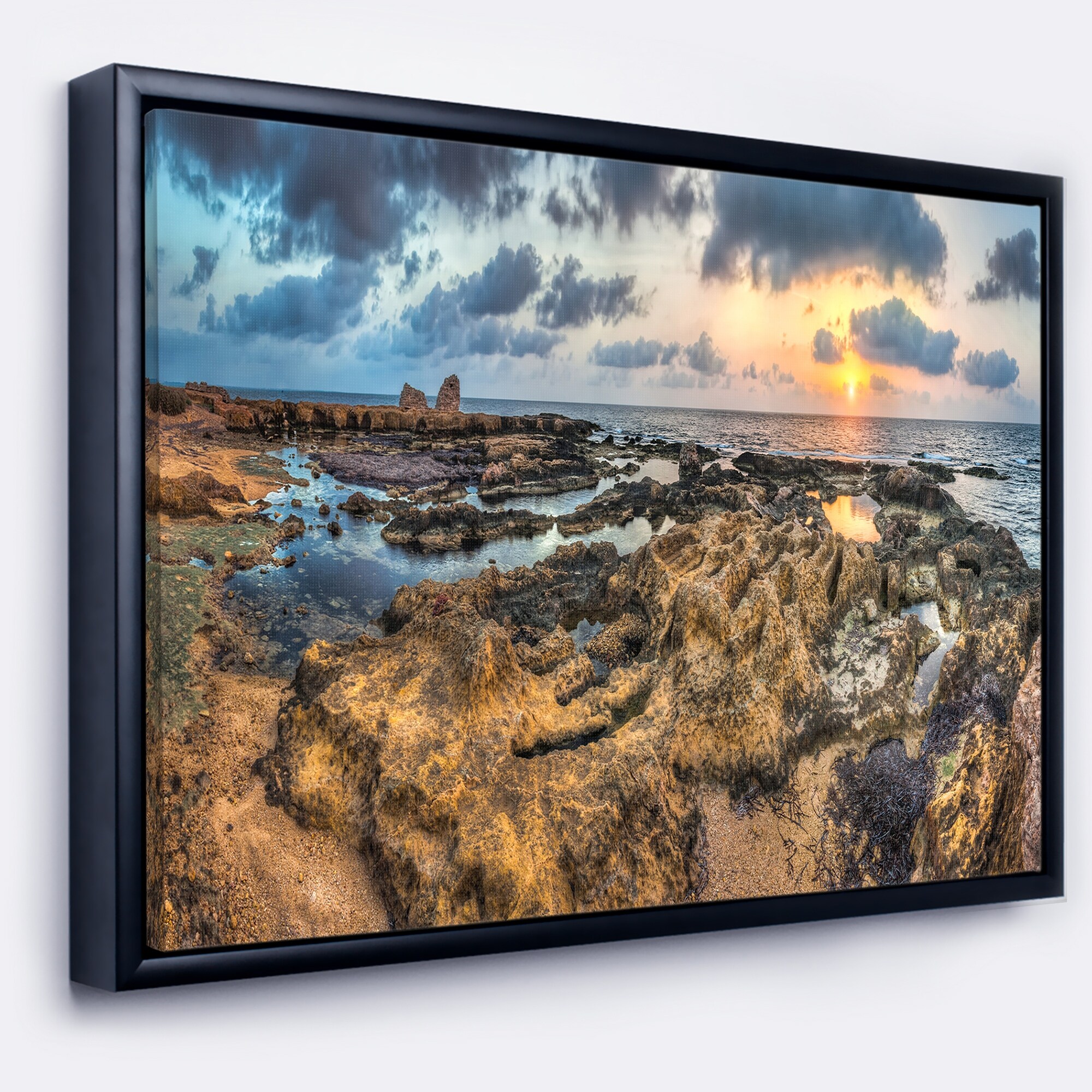 Designart "Rocky African Seashore Panorama" Oversized Beach Framed Canvas Artwork Print