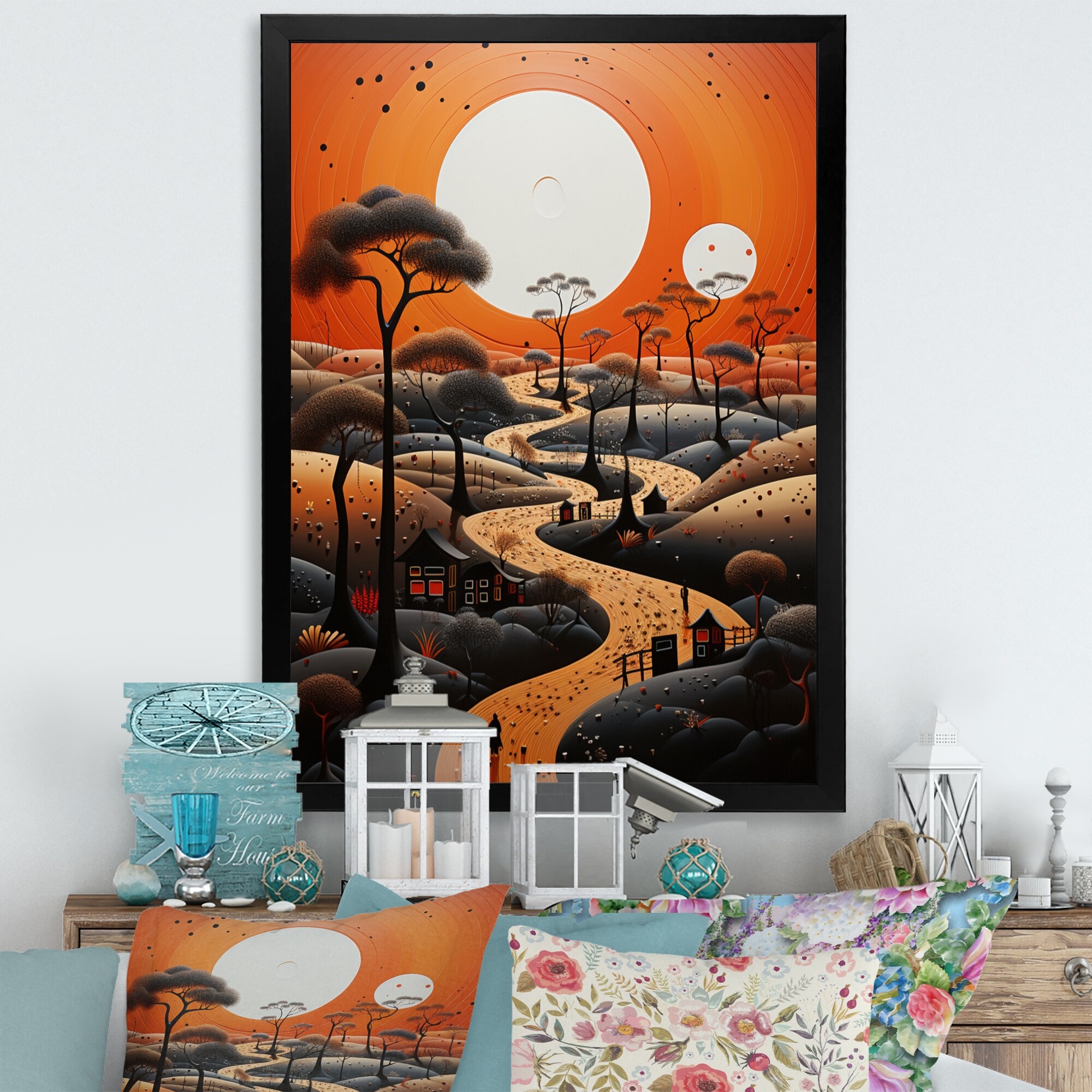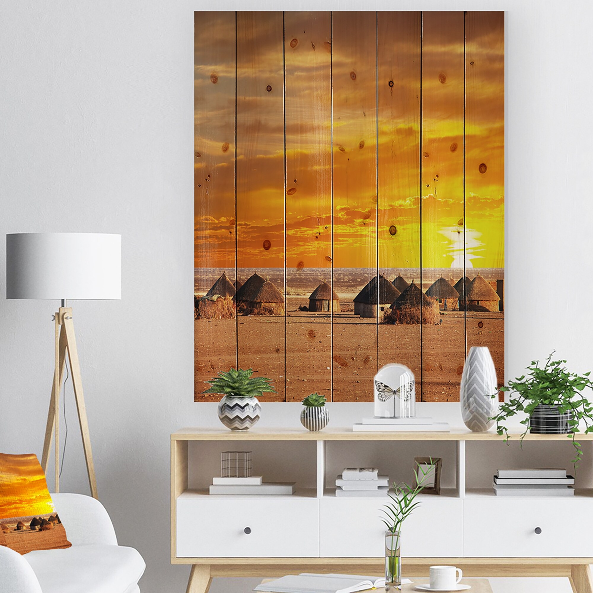 Designart 'Colorful African Village Huts View' Landscape Print on Natural Pine Wood - Yellow