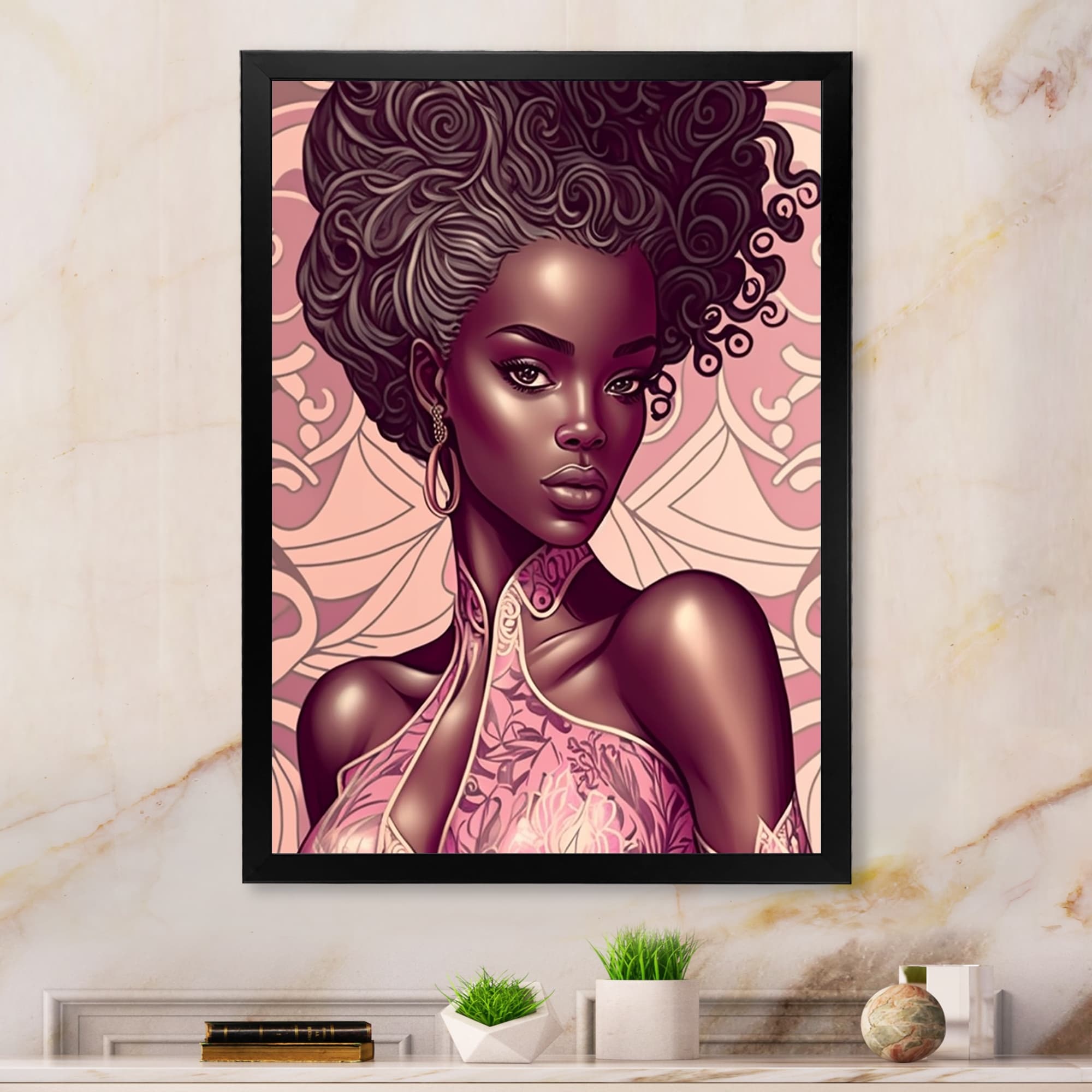 Designart "Pink And Blue African American Woman II" Contemporary Glam Framed Art Print