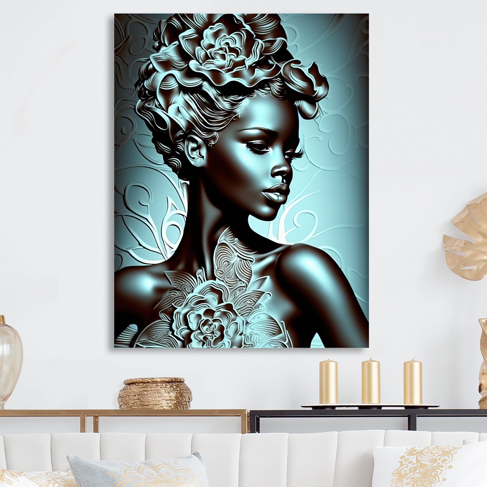 Designart 'Exquiste African Woman Design V' African American Woman Metal Wall Art