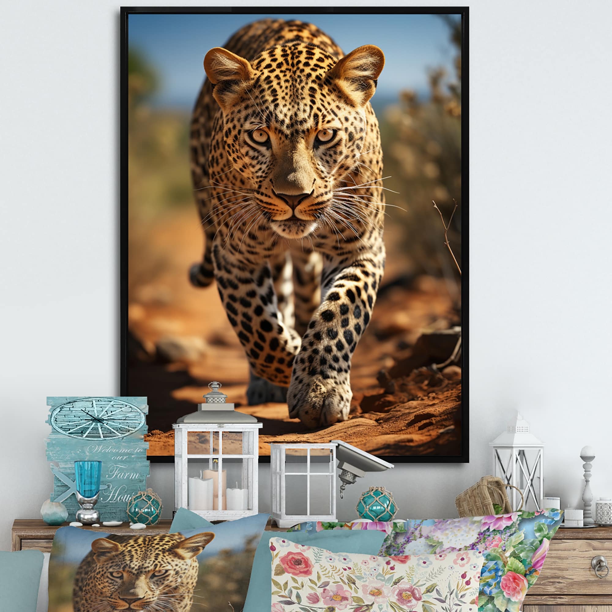 Designart "African Leopard Portrait I" Animals Leopard Framed Canvas Print
