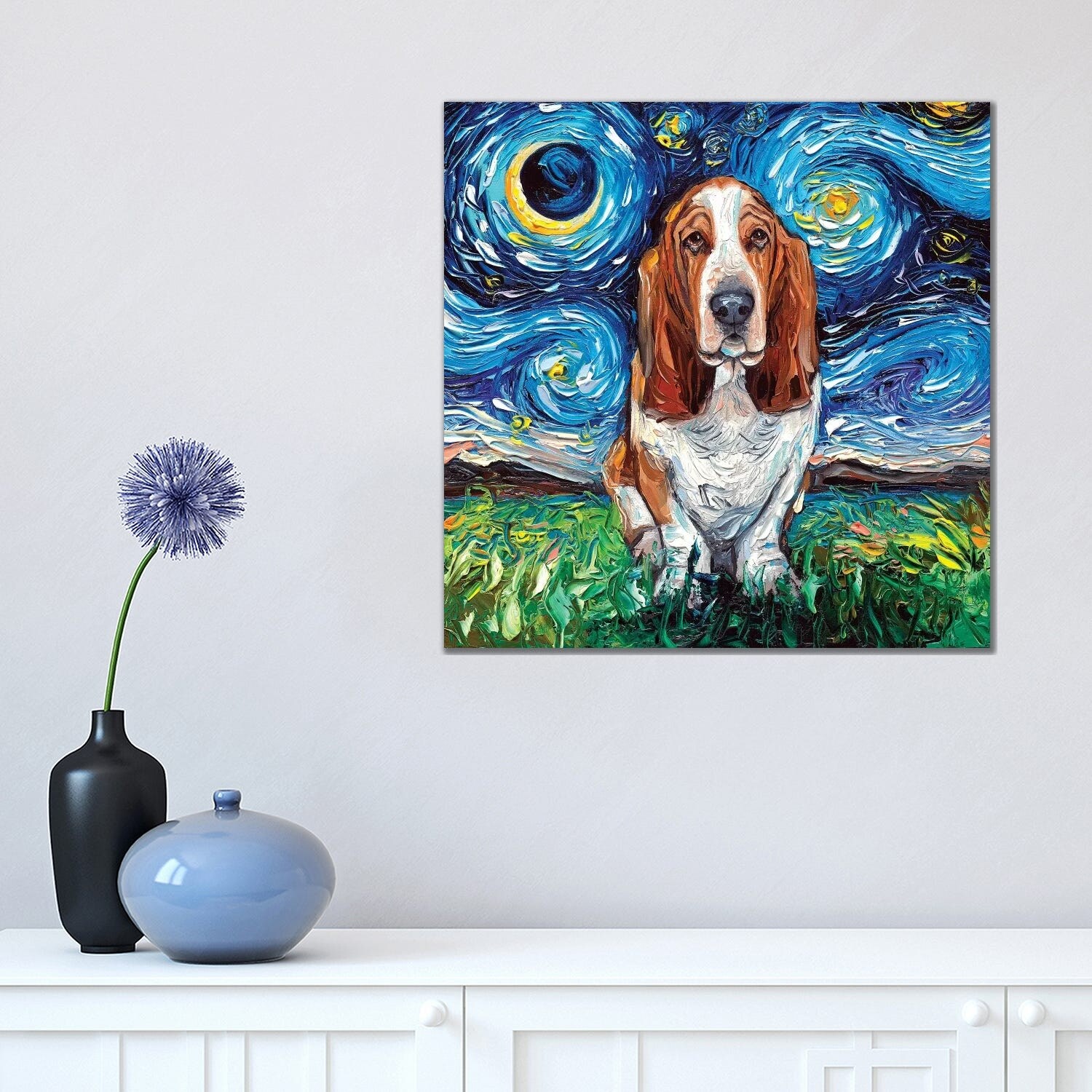 iCanvas "Basset Hound Night" by Aja Trier Canvas Print