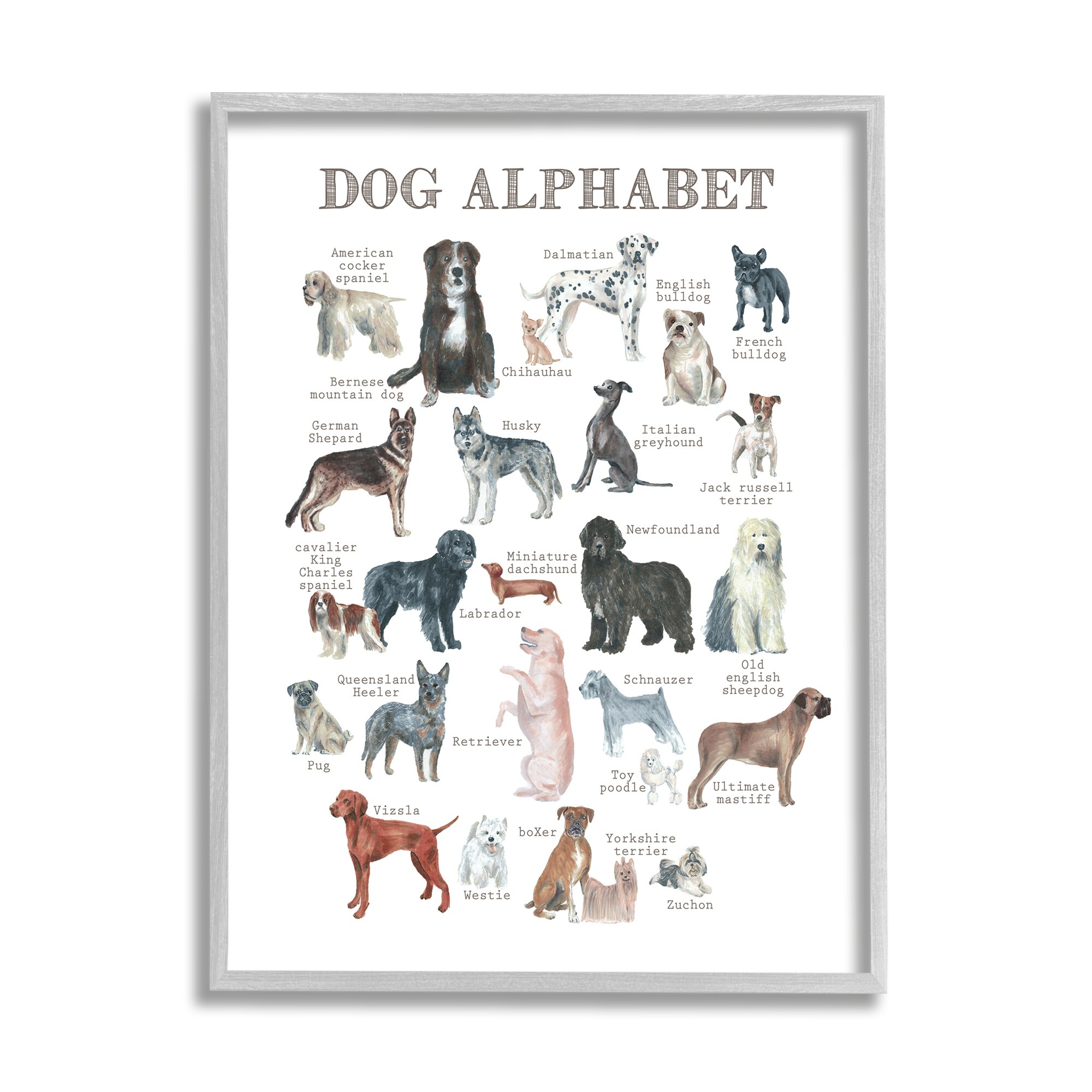 Stupell Dog Alphabet Multiple Breeds Educational Animals Chart Framed Wall Art, Design by Dishique - Multi