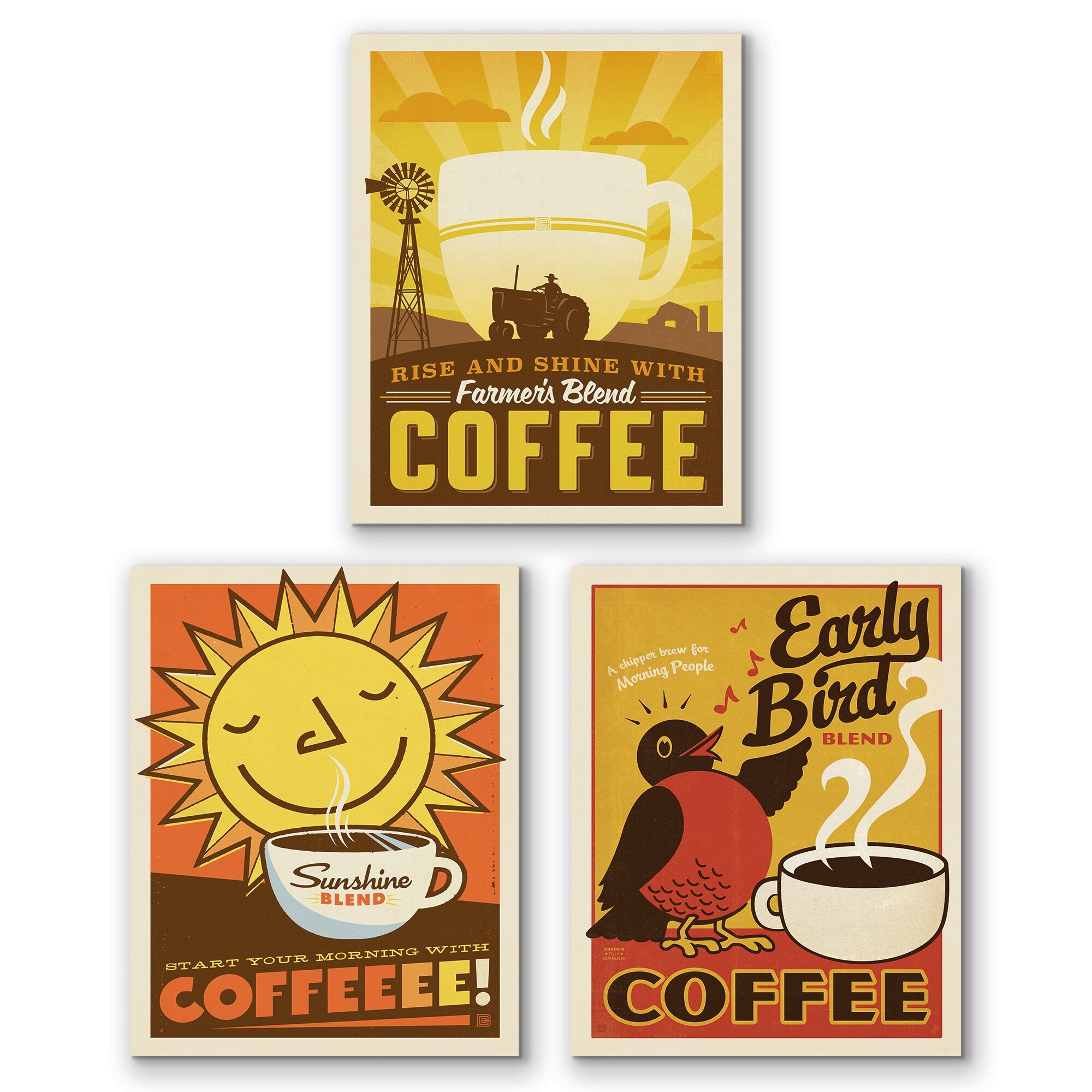 Americanflat 3 Piece Wrapped Canvas - Vintage Morning Coffee Art By Anderson Design Group