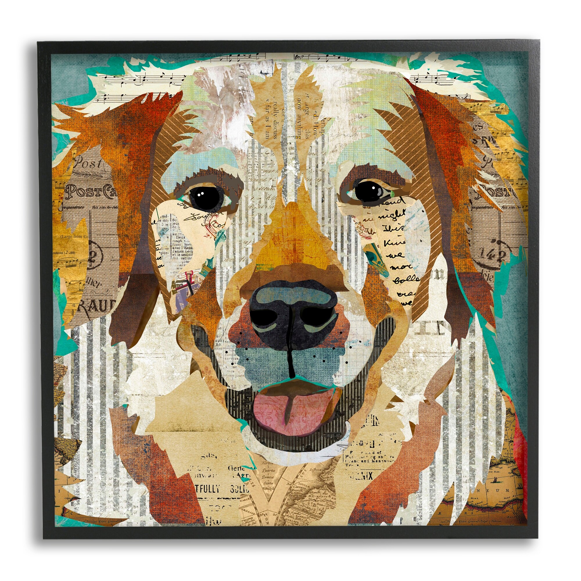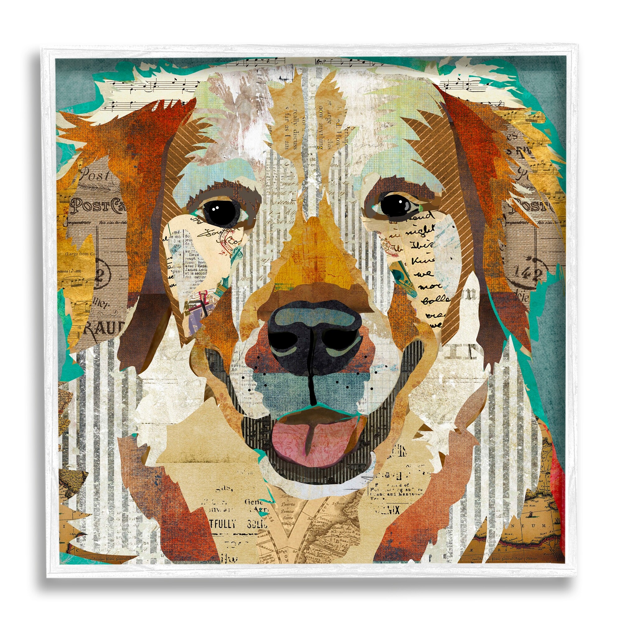 Stupell Industries Layered Dog Animal Portrait Ephemera Patchwork Collage Framed Wall Art, Design by Traci Anderson