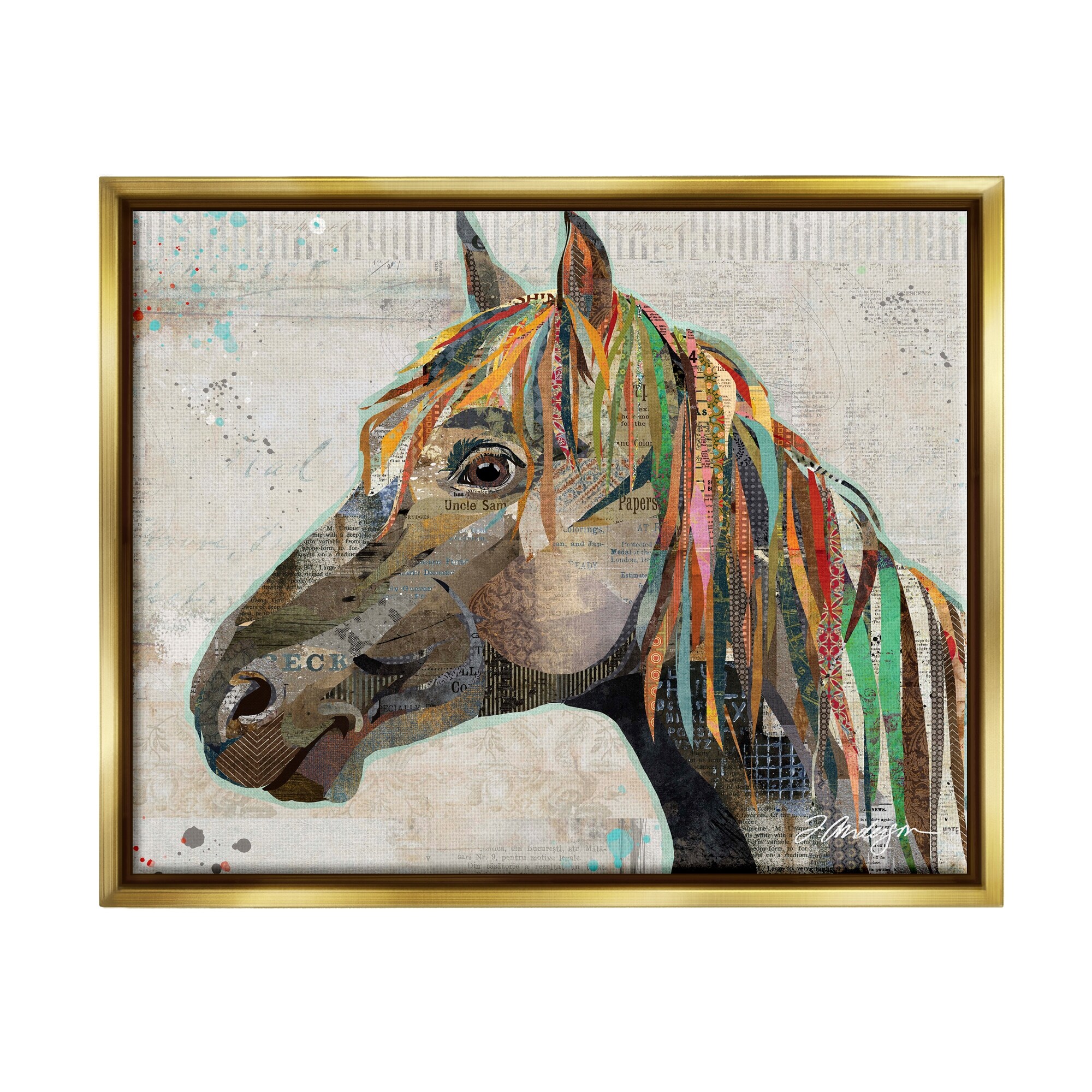 Stupell Industries Farm Horse Animal Portrait Varied Script Words Collage Floater Frame, Design by Traci Anderson