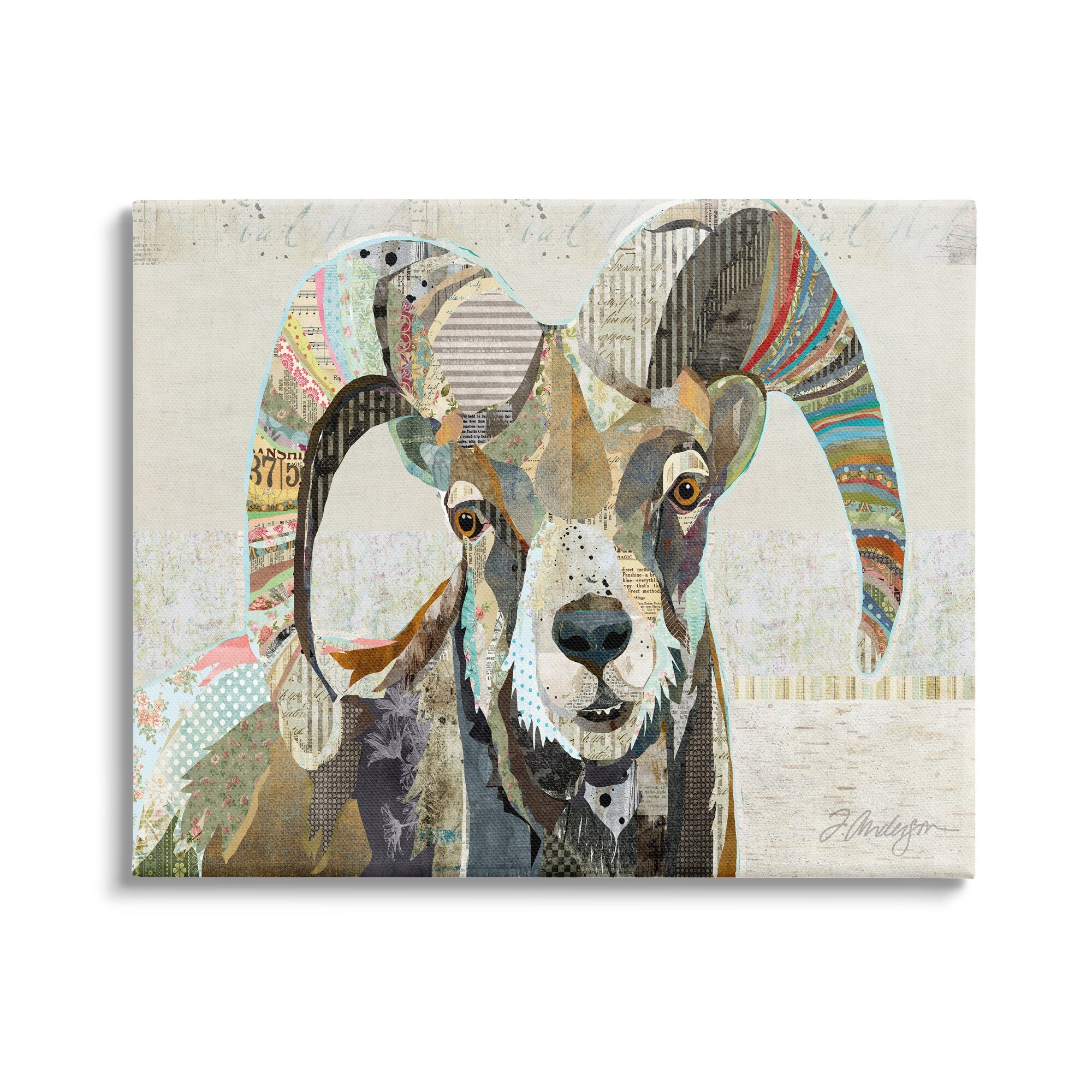 Stupell Industries Goat Striped Horns Ephemera Collage Stretched Canvas Wall Art, Design by Traci Anderson