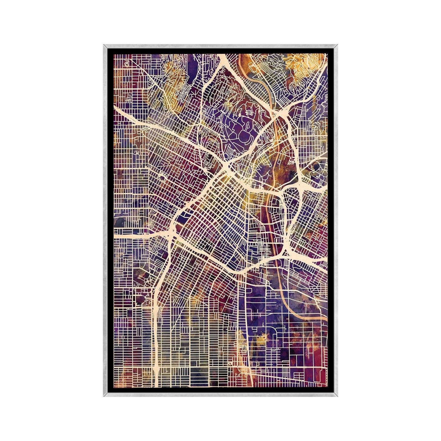 iCanvas "Los Angeles City Street Map II" by Michael Tompsett Framed
