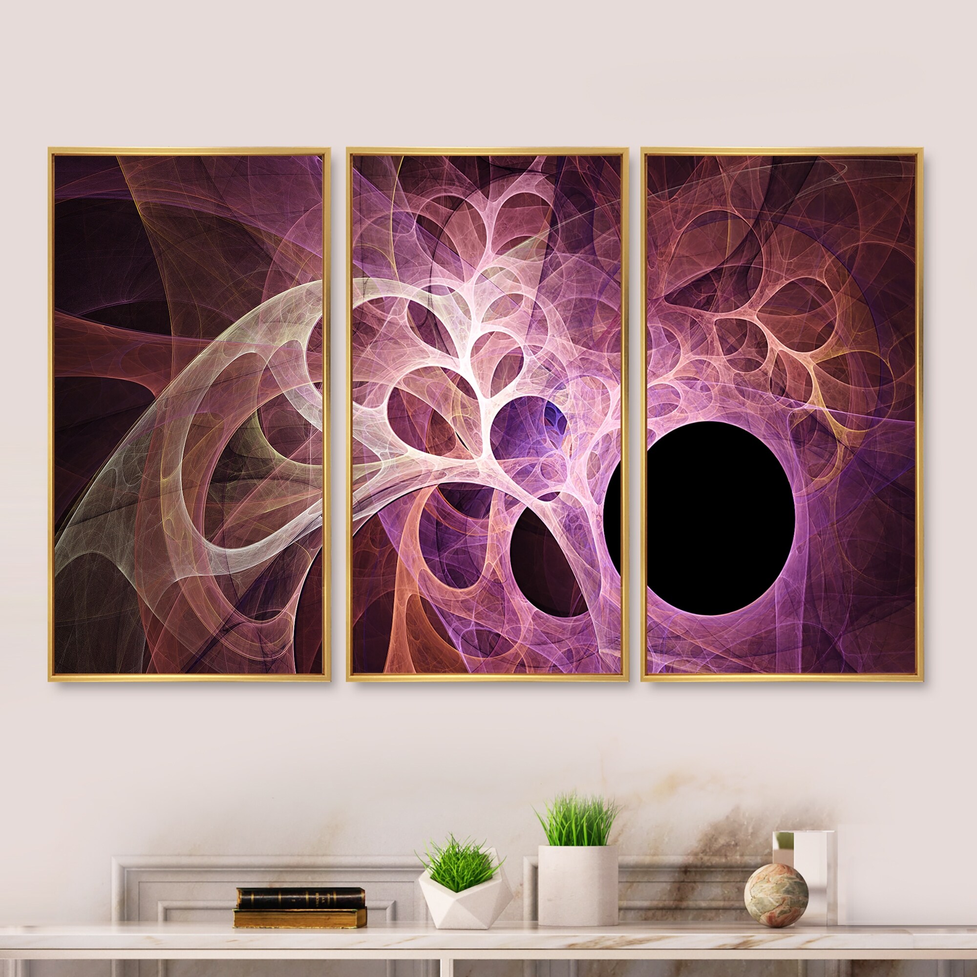 Designart "Fractal Angel Wings in Pink" Abstract Framed Art Prints Set of 3 - 4 Colors of Frames