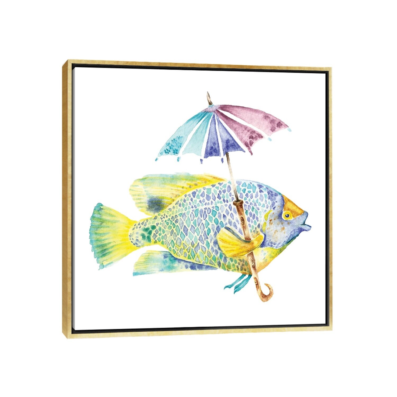 iCanvas "Yellow Mask Angel Fish With Umbrella" by Goosi Framed Canvas Print
