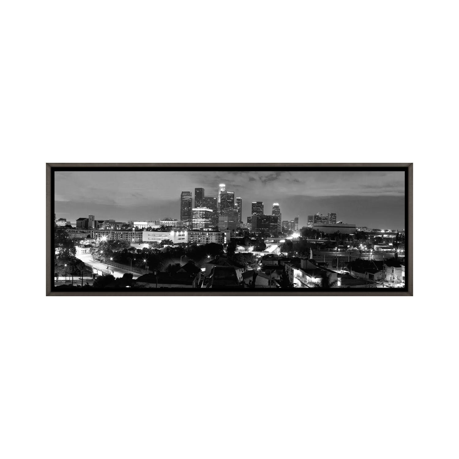iCanvas "Los Angeles Panoramic Skyline Cityscape (Black & White - Night)" by Unknown Artist Framed