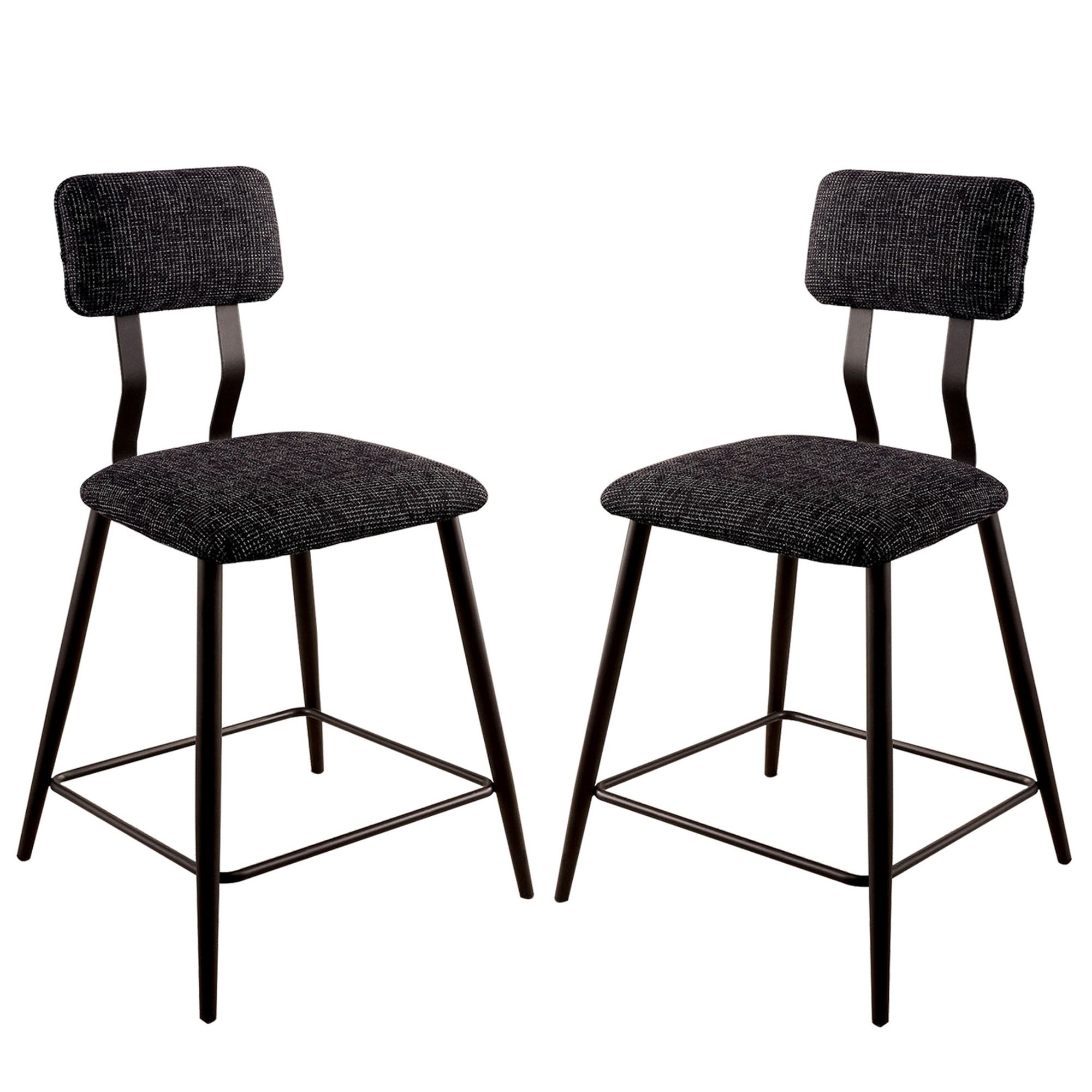 Fabric Counter Height Chairs with Angled Metal Legs, Set of 2, Black