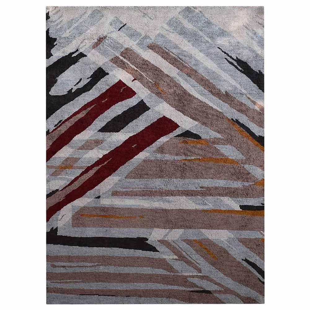 Hand Knotted Silk 6'x9' Area Rug Abstract Multicolor Angled