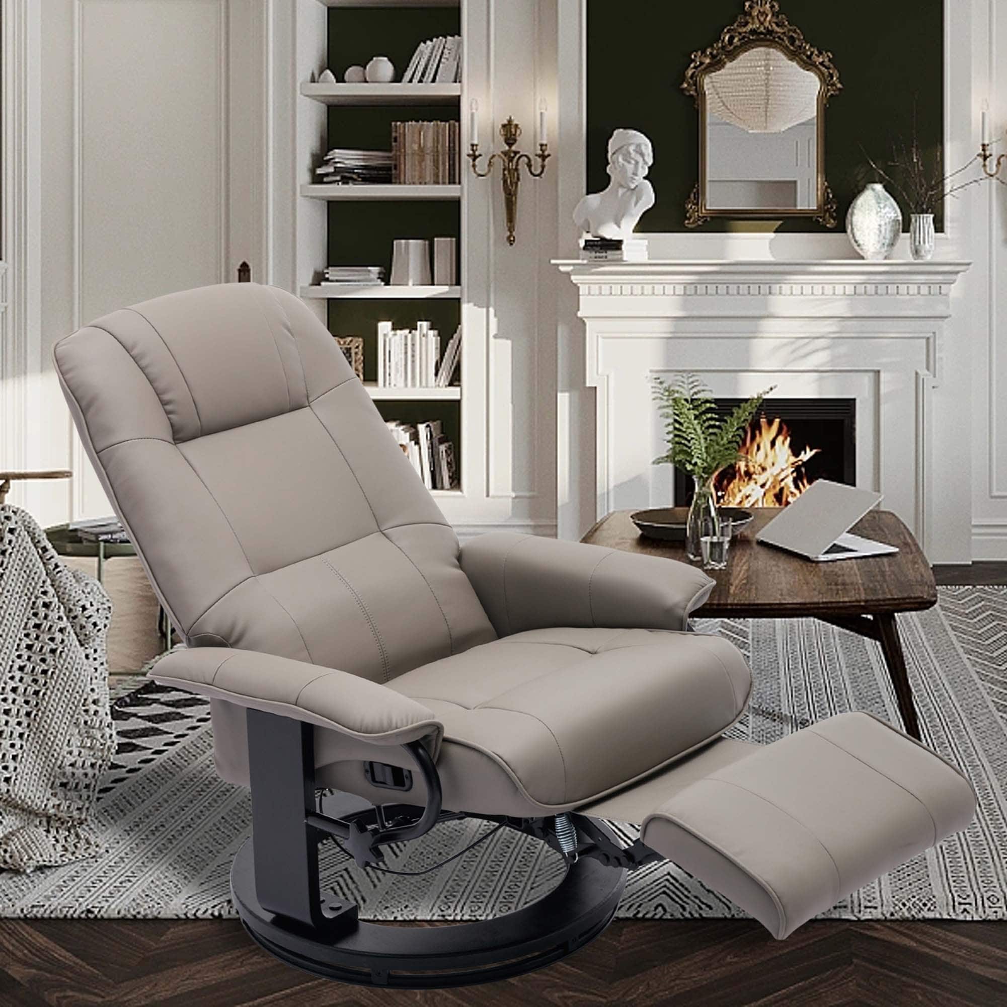 Adjustable Swivel Lounge Chair with Footrest,L-right Angle Curved Wooden Frame