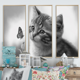 Designart "Digital Drawing of Little Kitten With Butterfly I" Animals Cat Framed Canvas Wall Art Print - 3 Panels