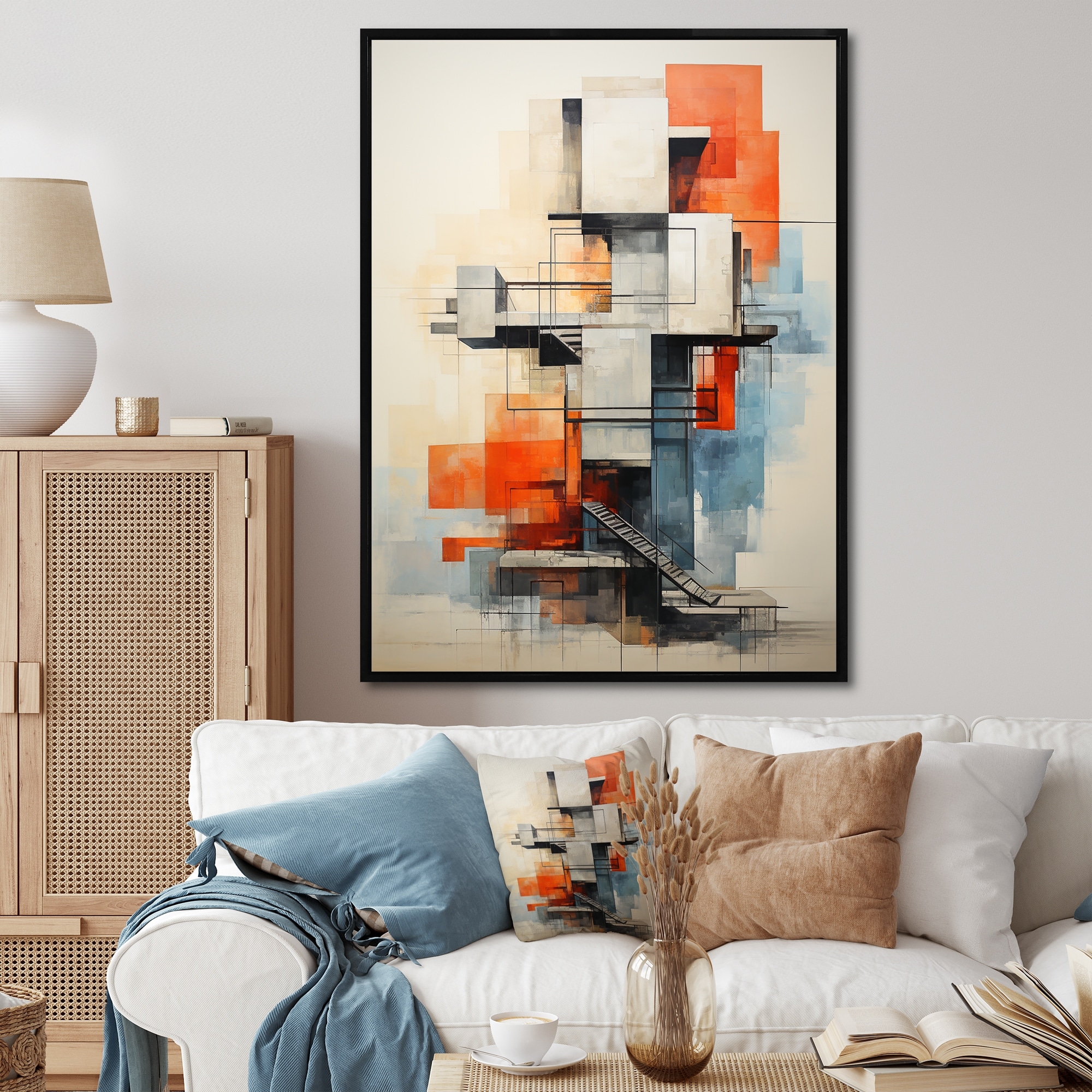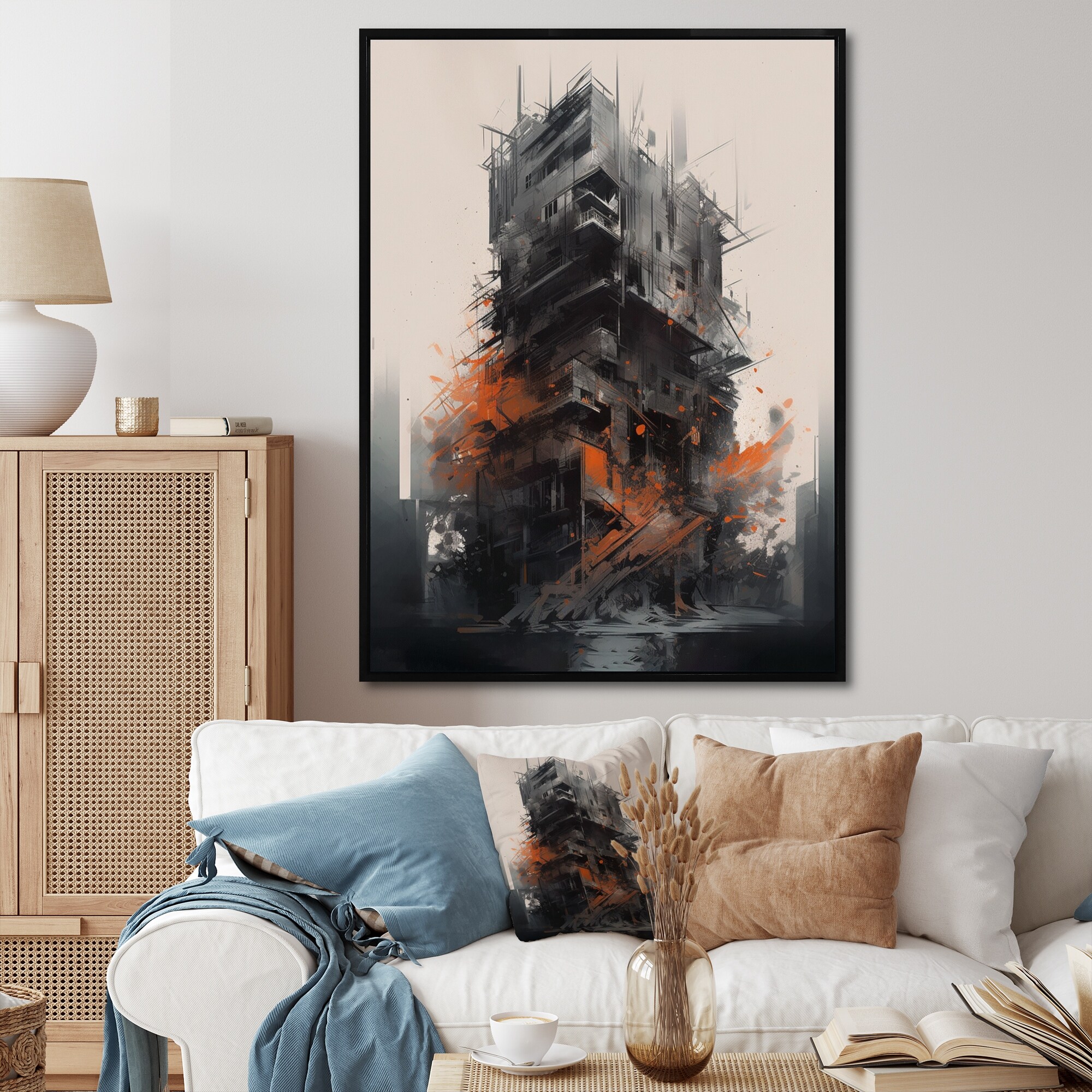 Designart "Grey And Orange Architectural Tapestry" City Art Deco Framed Canvas Wall Art
