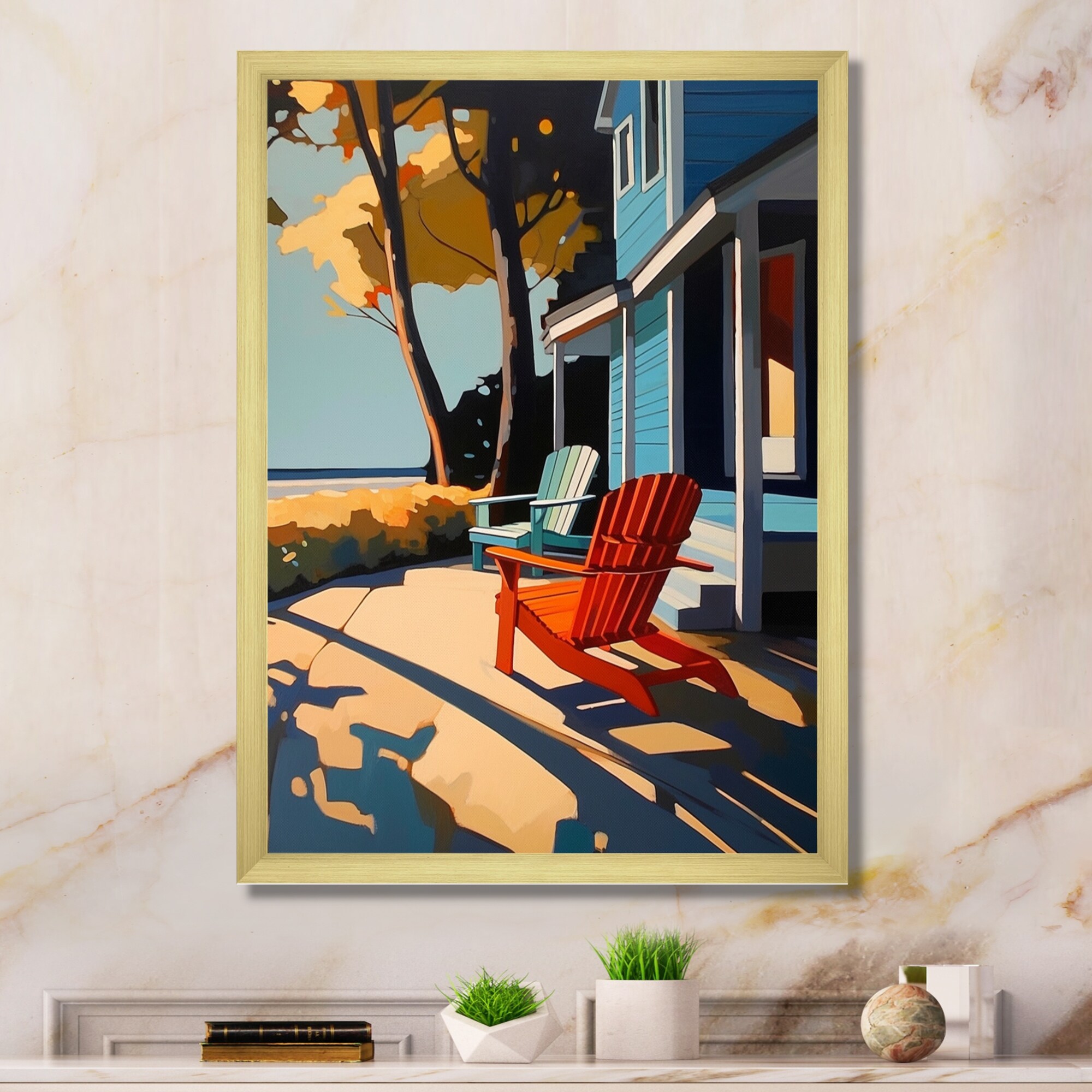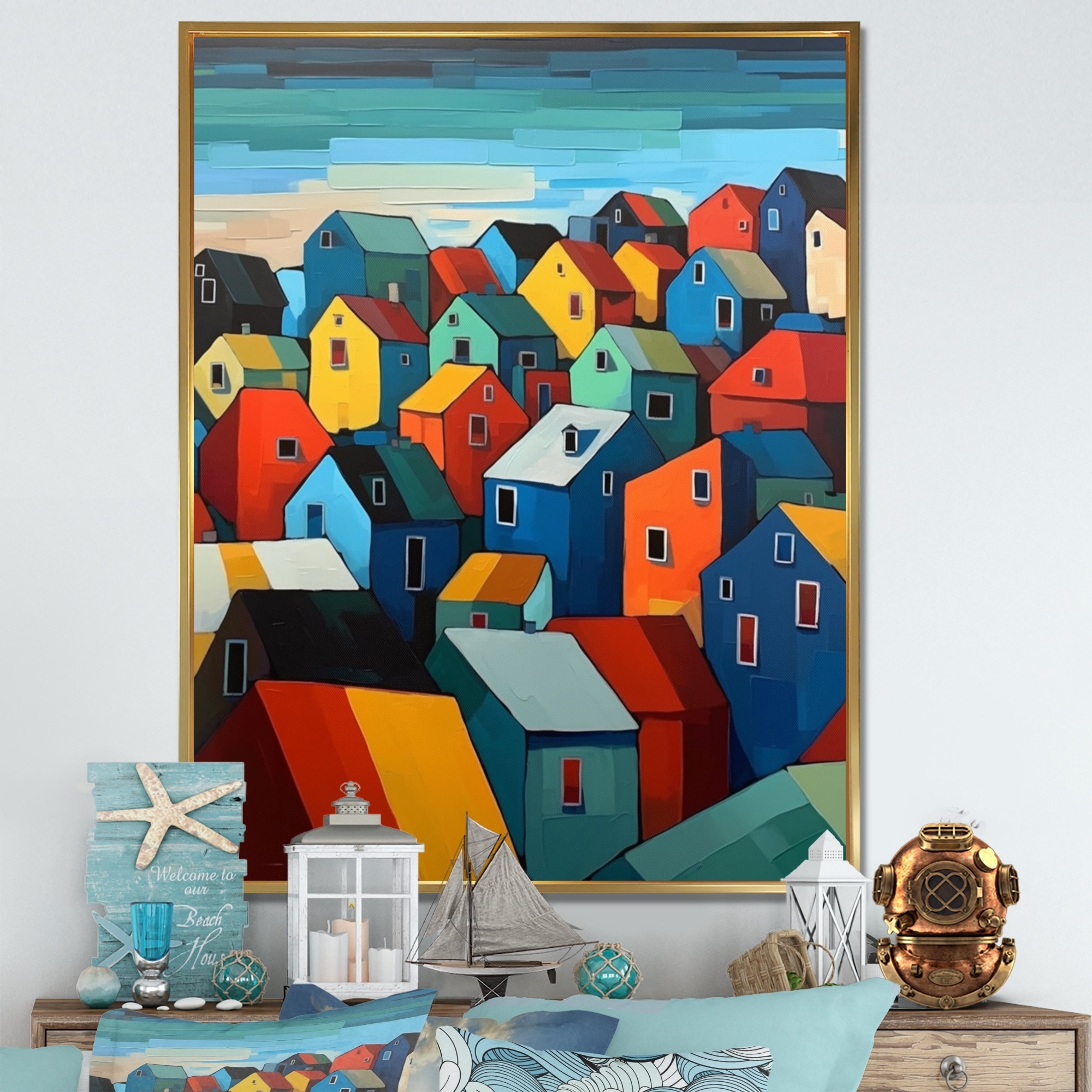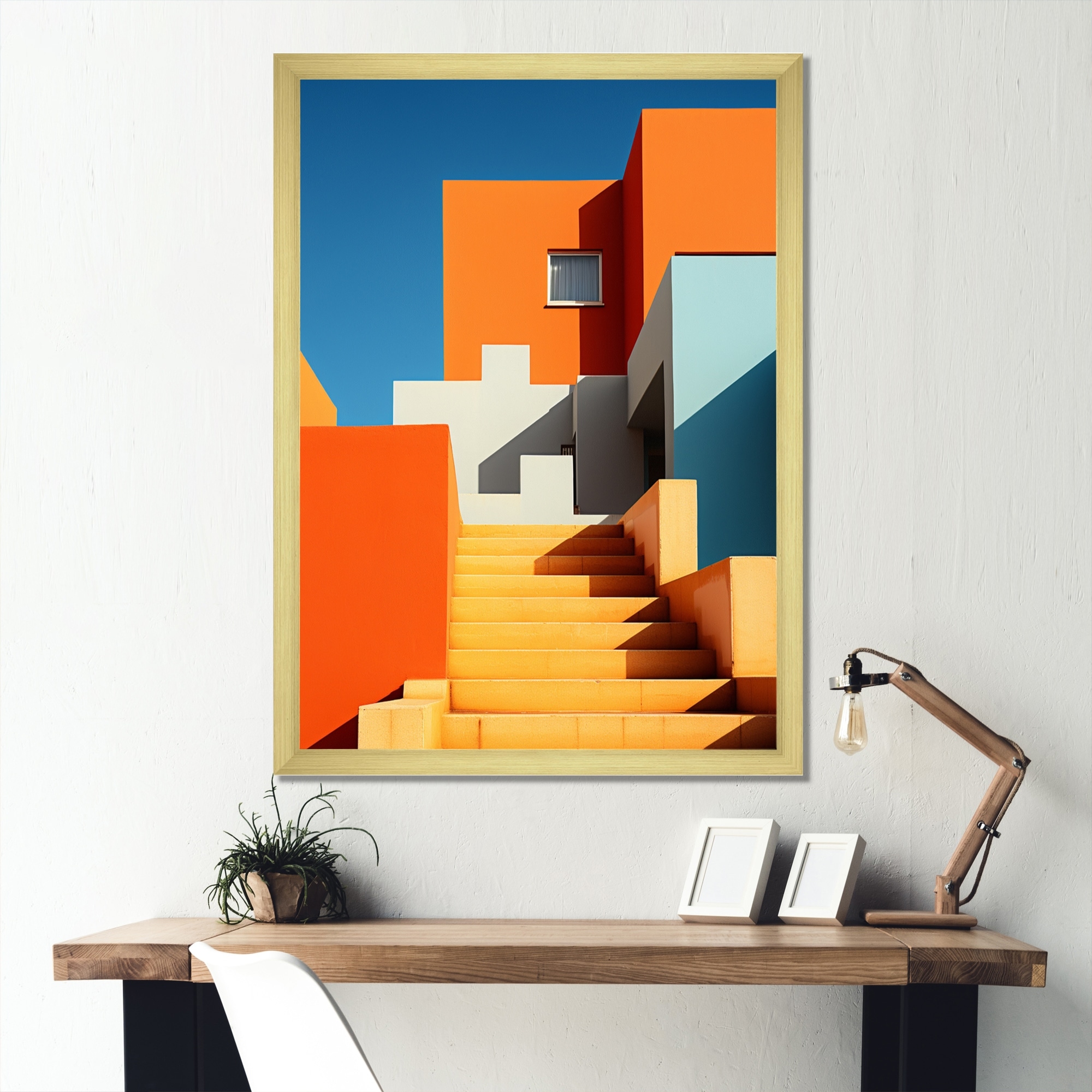 Designart "Colorful Mid Century Abstract Architectures II" Mid-century Framed Canvas Wall Art