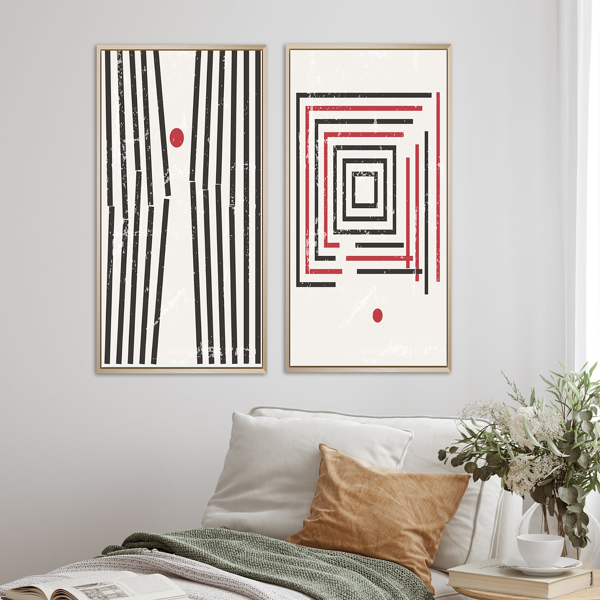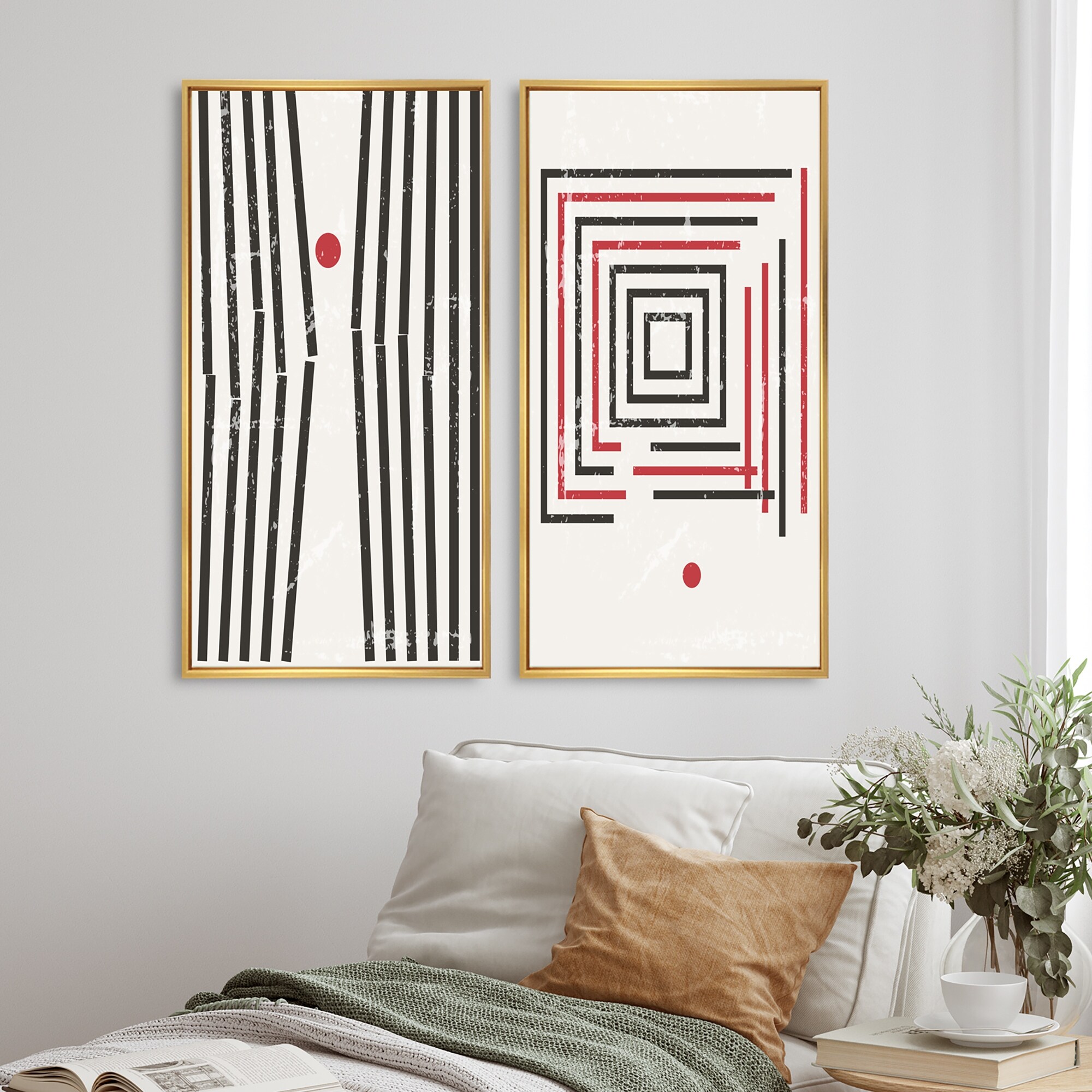 Designart "Graphic Vintage Minimal Architecture VII" Geometric Framed Art Set of 2 Pieces