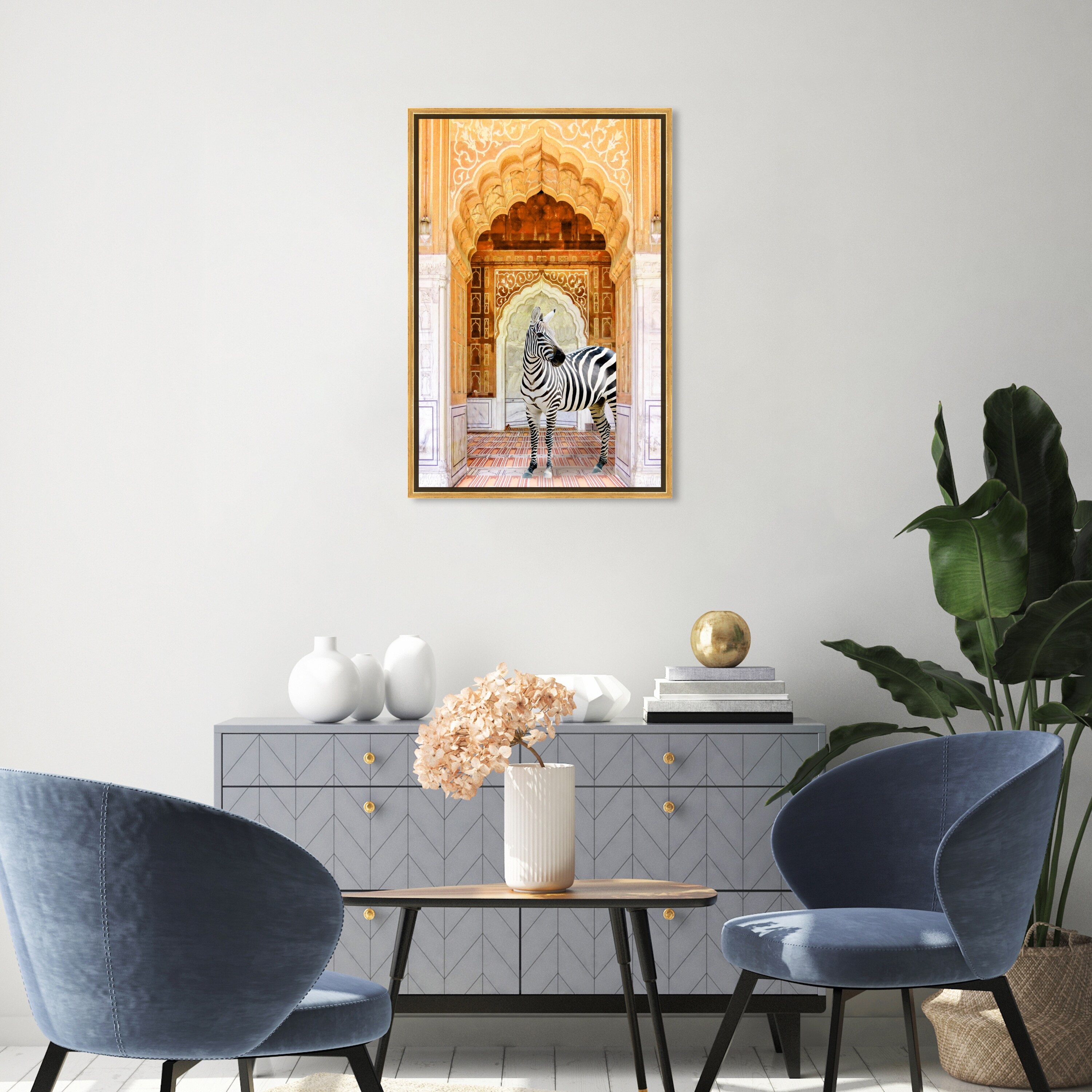 Oliver Gal 'Zebra Entrance' Architecture Yellow Wall Art Canvas Print