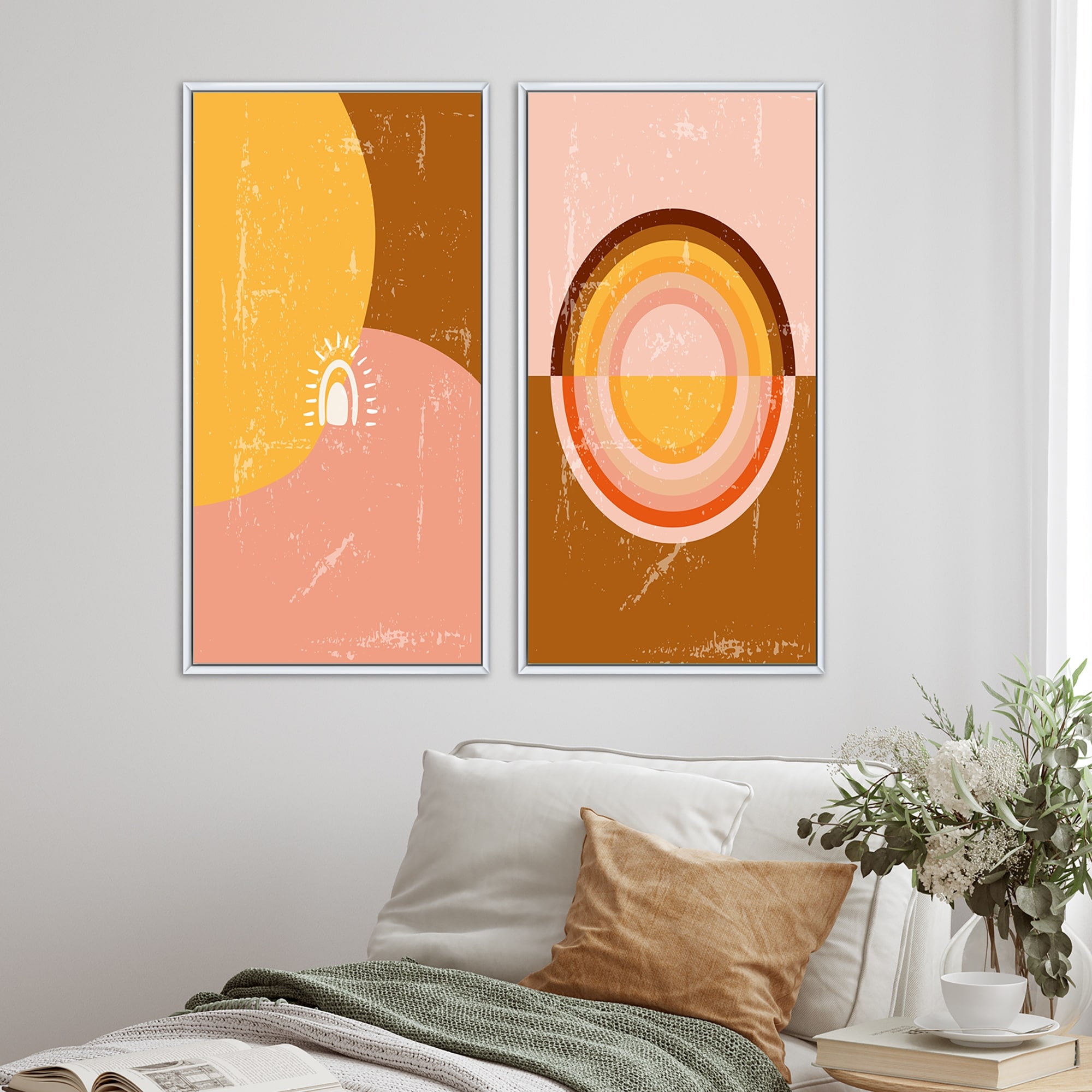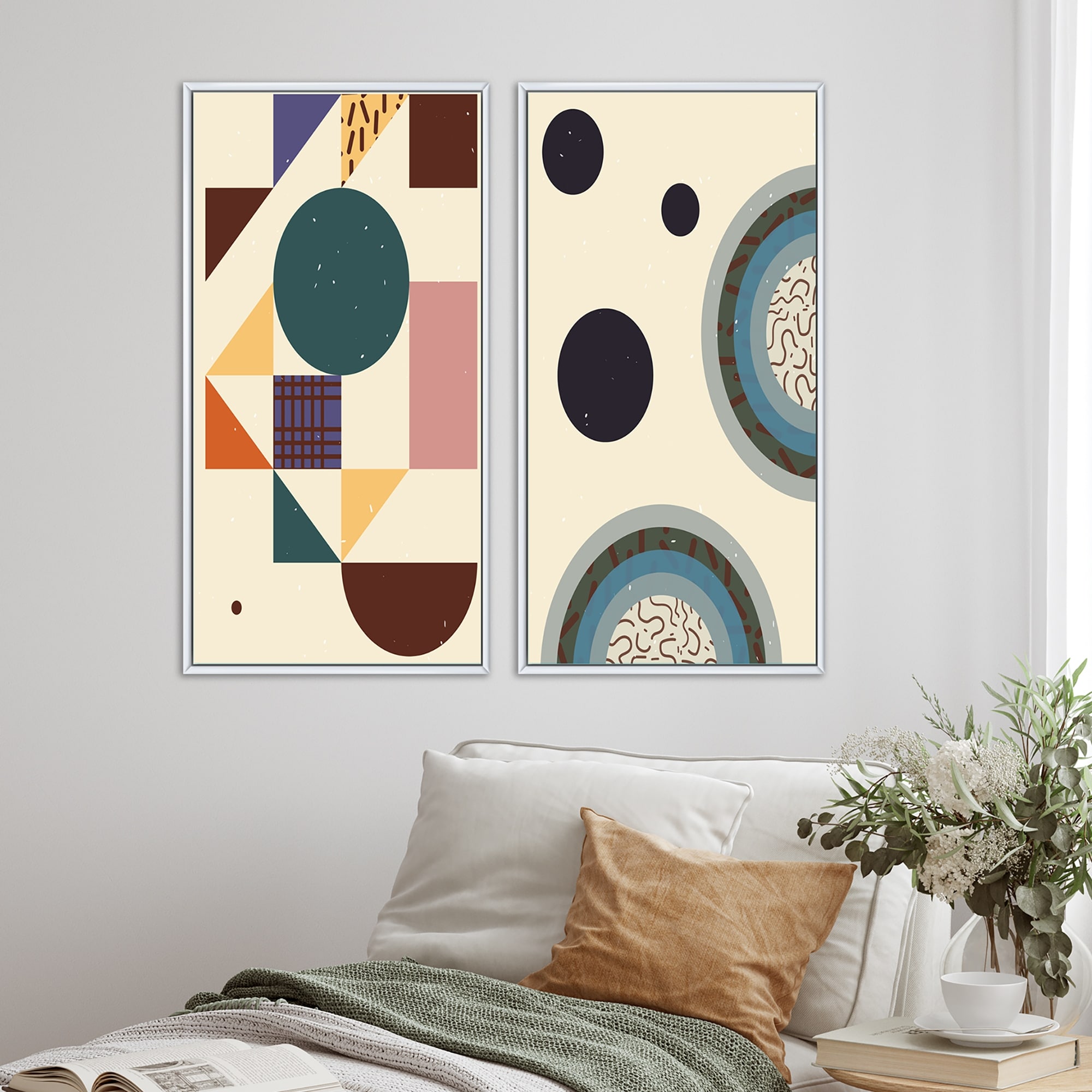 Designart "Graphic Vintage Minimal Architecture VIII" Geometric Framed Art Set of 2 Pieces