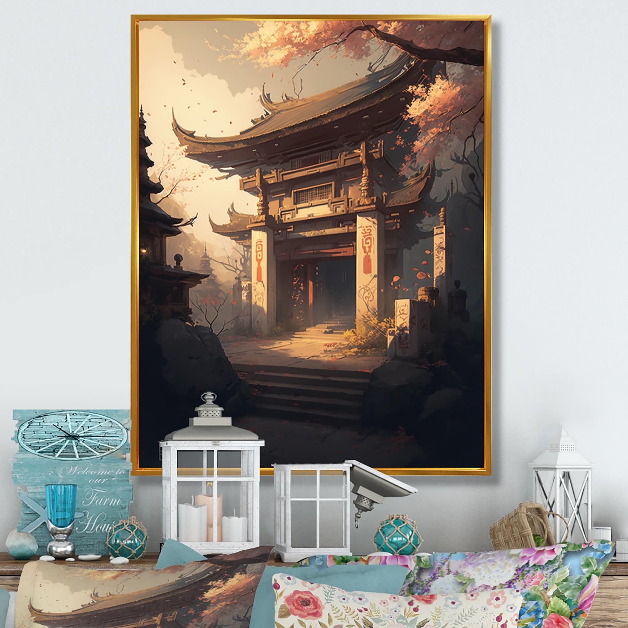 Designart "Architectural City Landscape II" Japon Landscape Framed Canvas Art Print