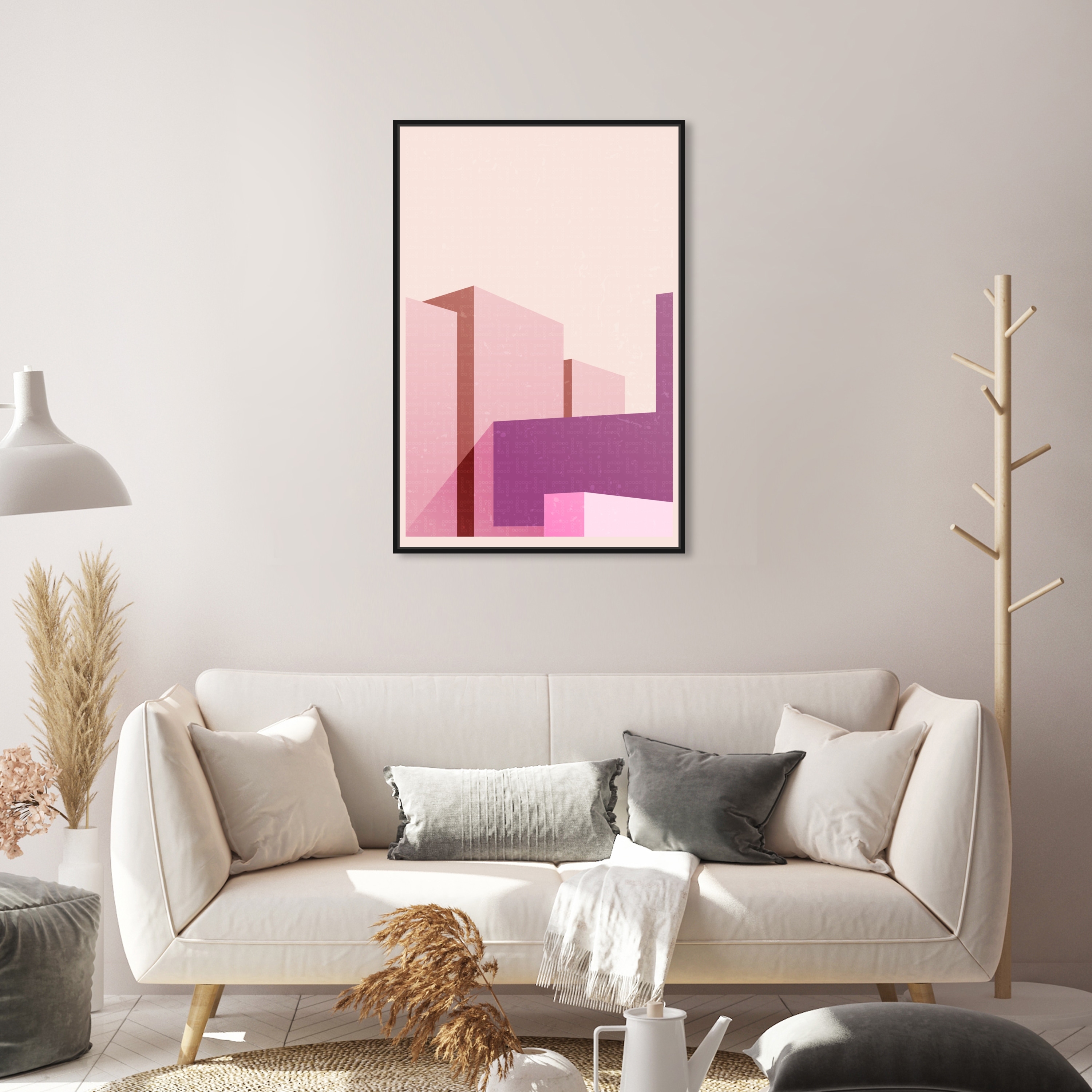 Oliver Gal 'Freeshape Building 4' Architecture Pink Wall Art Canvas