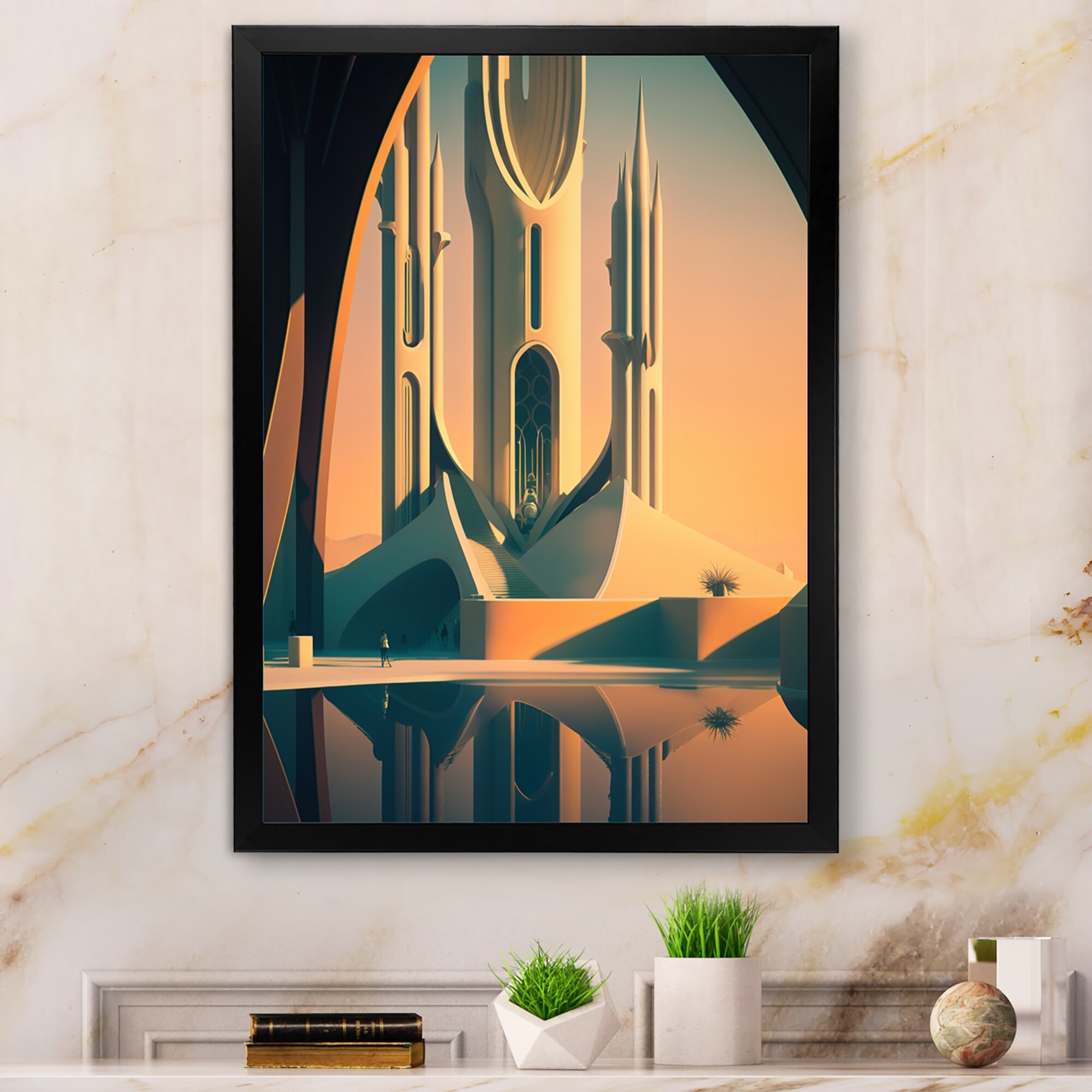 Designart "Landscape Architectural Abstractions I" Towers Framed Wall Decor