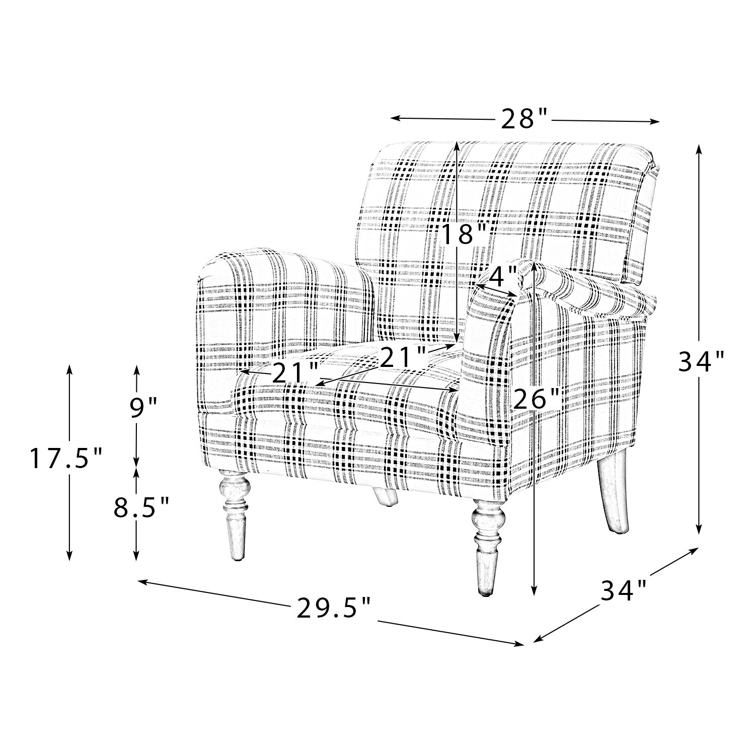 35.5inch Candor Arm Chair with Solid Wood Legs