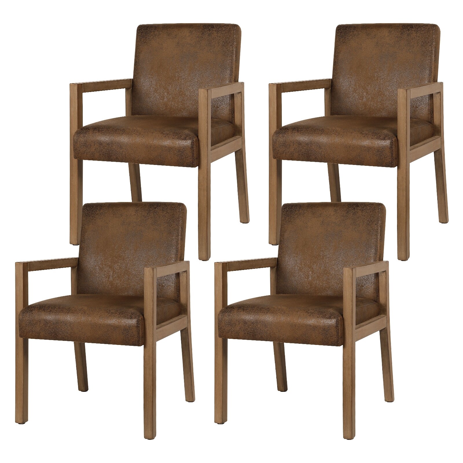 Vintage Upholstered Accent Dining Arm Chairs, Rustic Brown - N/A