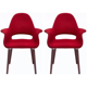 Set of 2 Organic Upholstered Fabric Modern Armchairs with Dark Walnut Brown Wooden Legs for Dining Room Office or Accent Chair