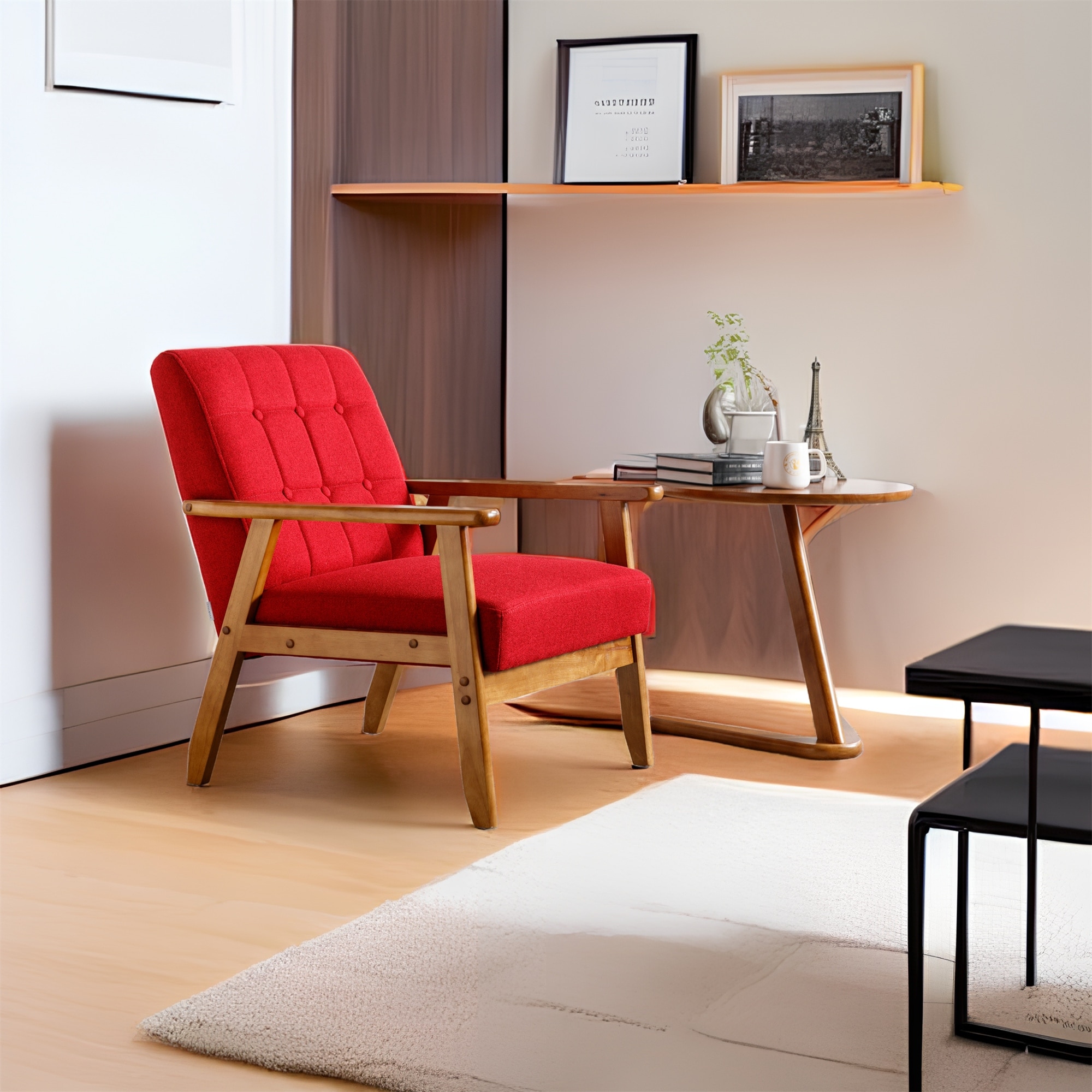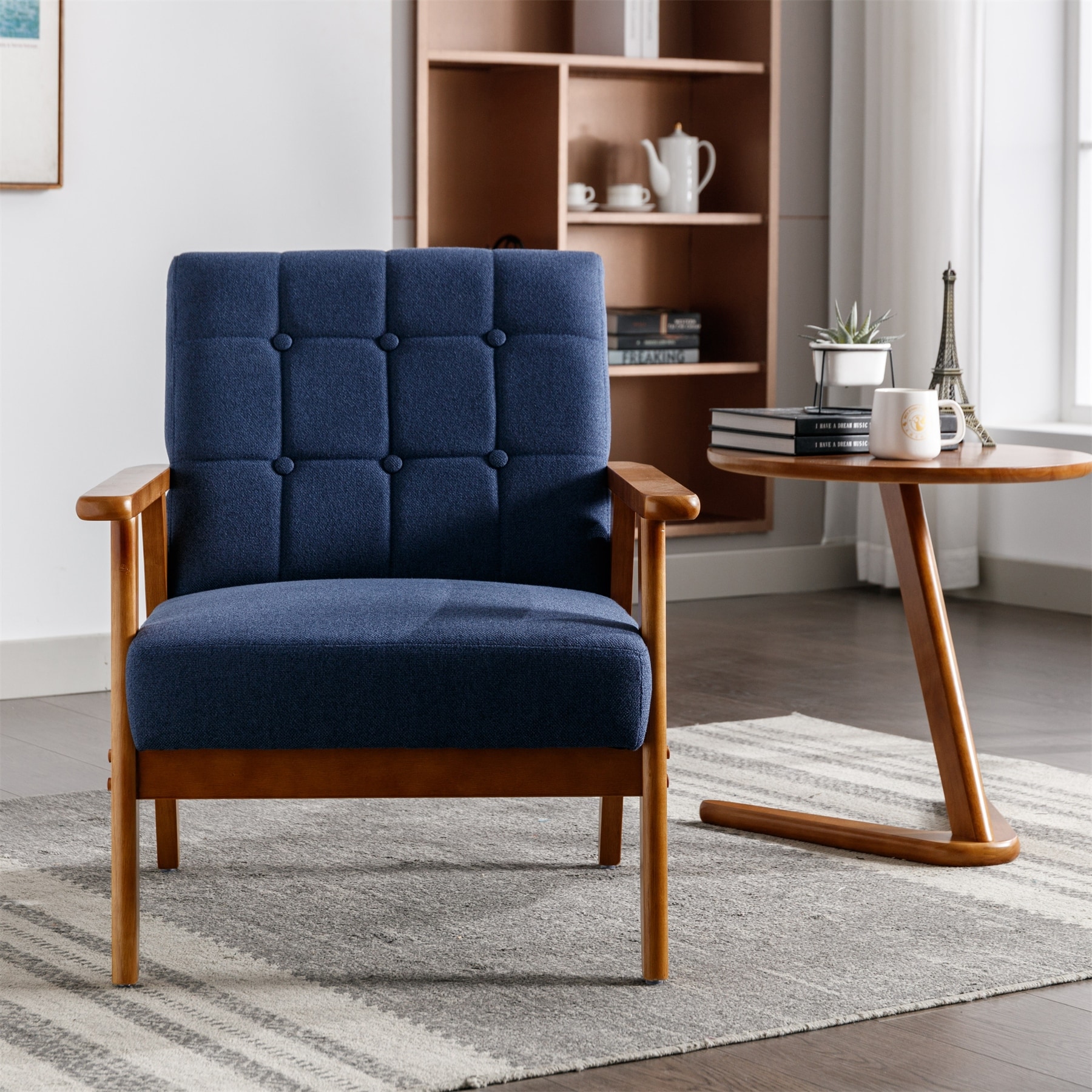 Modern Solid Wood Armrest Accent Chair, Mid-Century Linen Upholstered Button Lounge Chairs, for Livingroom Chair Studio Chair