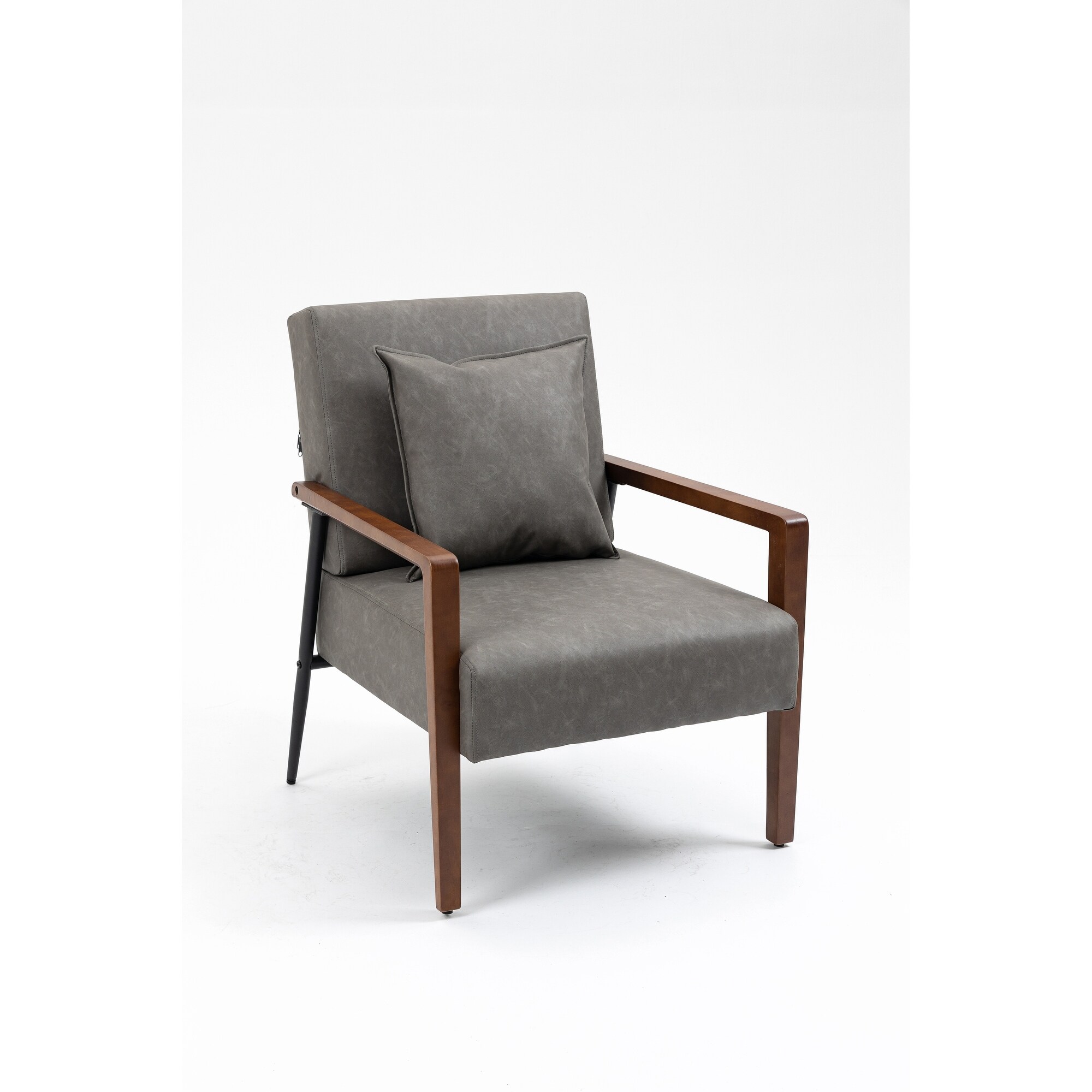 Leather Armchair Accent Chair with Solid Wood Armrest & Removable Cushions