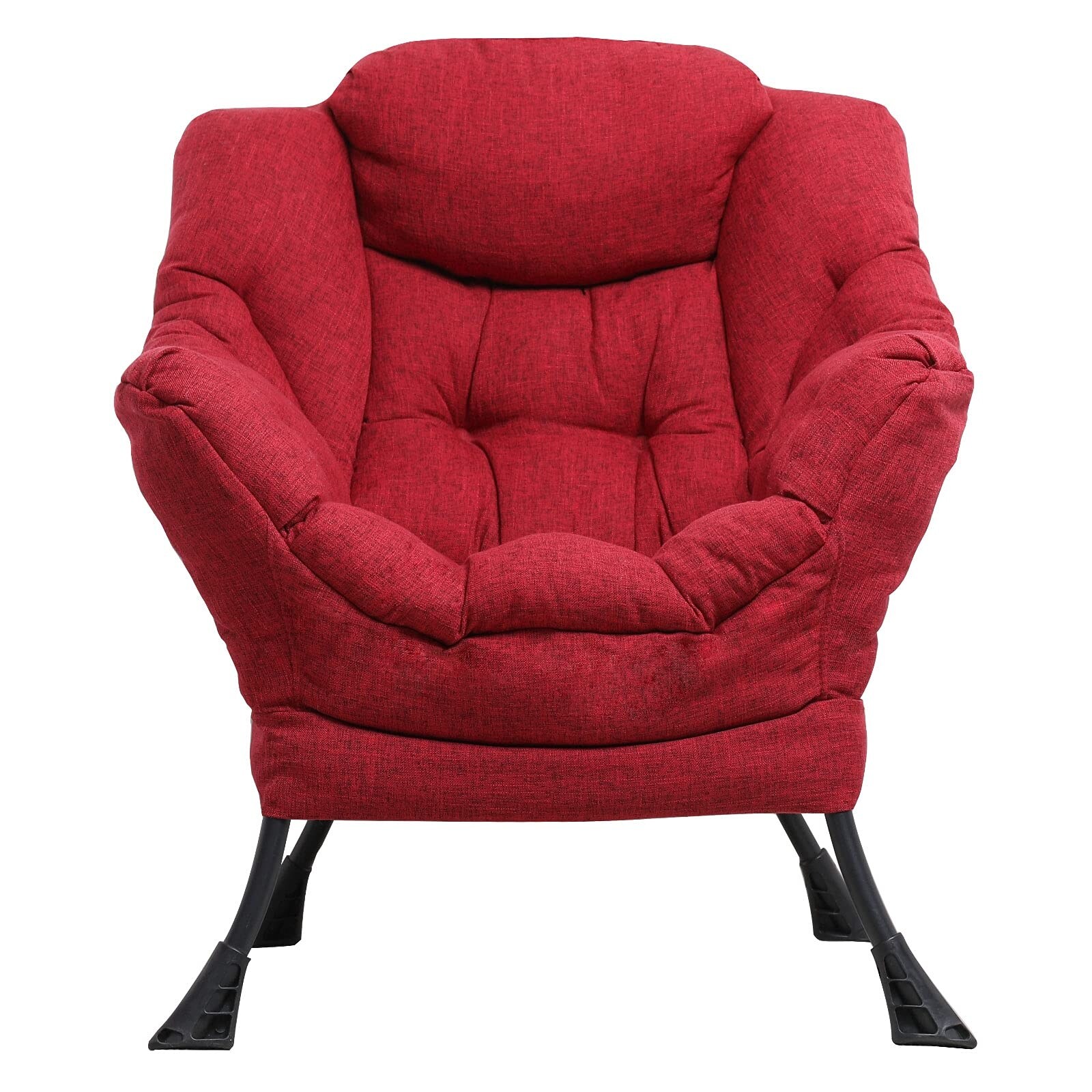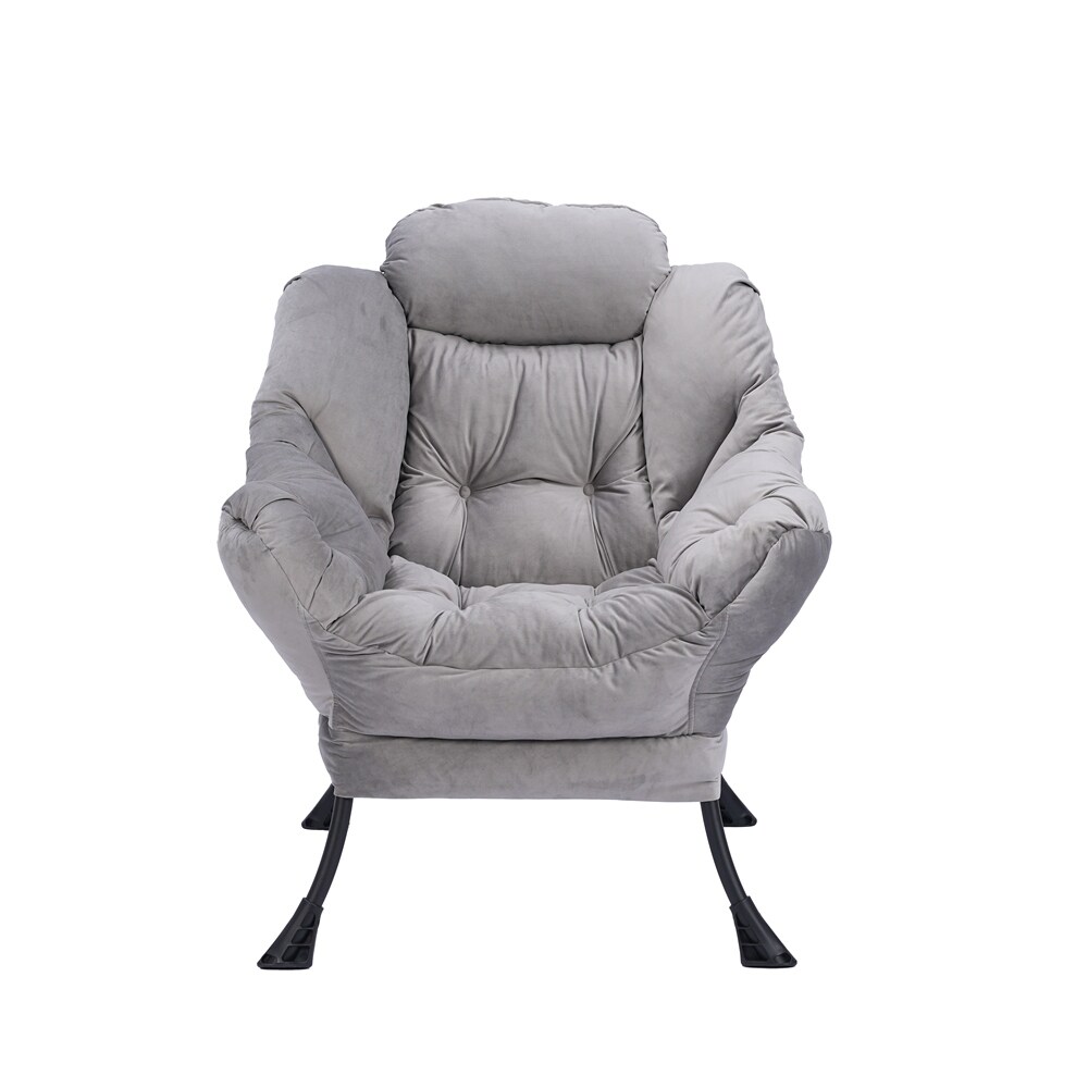 Modern Fabric Lazy Chair, Soft Accent Lounge Chair, Single Steel Frame Sofa Chair with Armrests, Side Pocket, Thick Padded Back