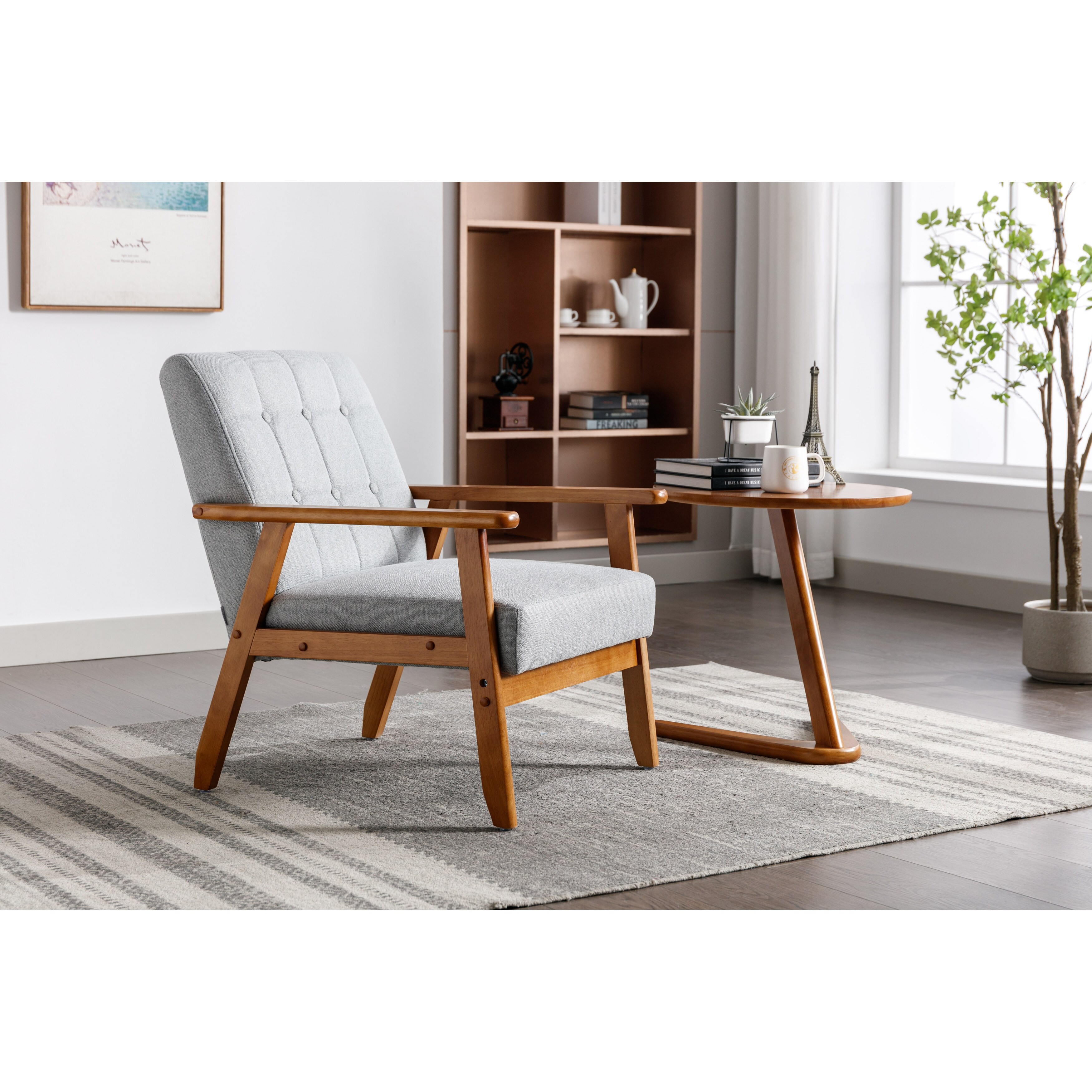 Modern Solid Wood Armrest Accent Chair, Mid-Century Linen Upholstered Button Lounge Chairs, for Livingroom Chair, Light Gray
