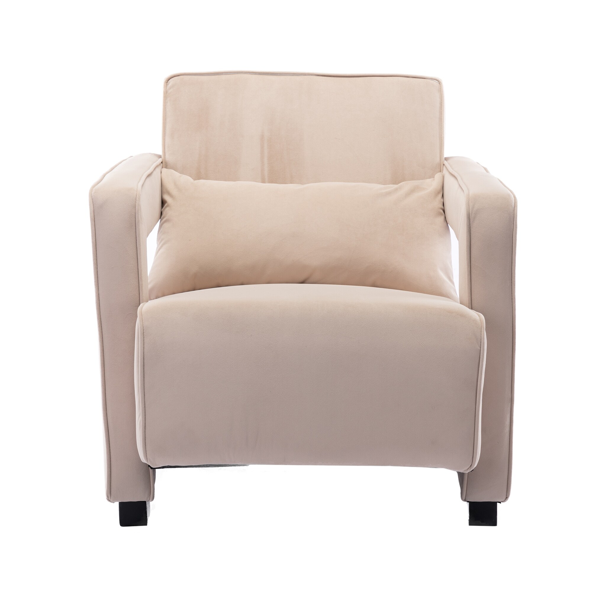 Modern Velvet Upholstered Armchair with Pillow, Armrest Single Sofa Accent Leisure Style Chair