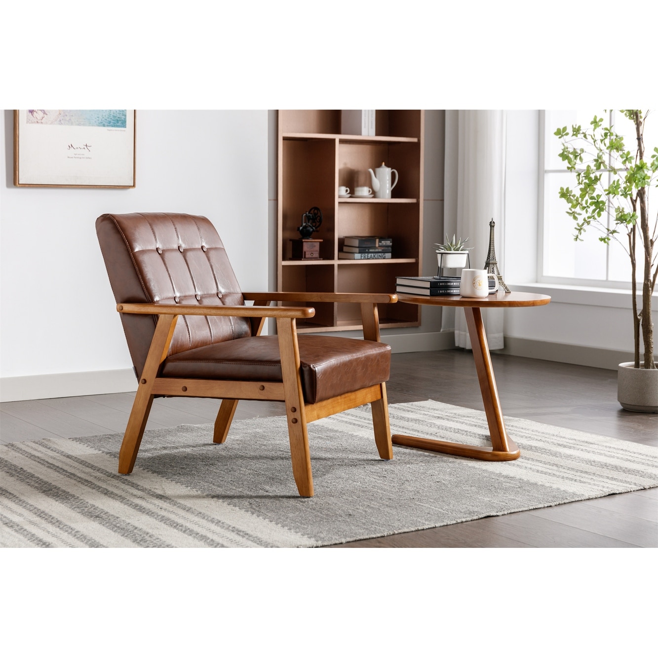 Modern PU Leather Button Lounge Chairs Solid Wood Armrest Accent Chairs