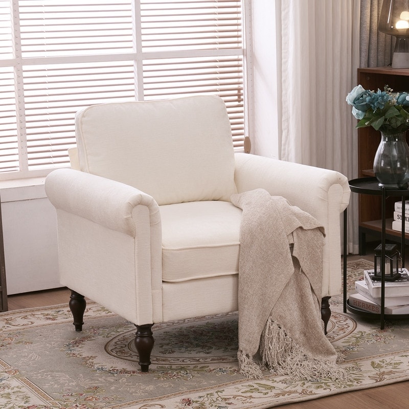 Linen Leisure Chair with Solid Wood Armrest and Feet