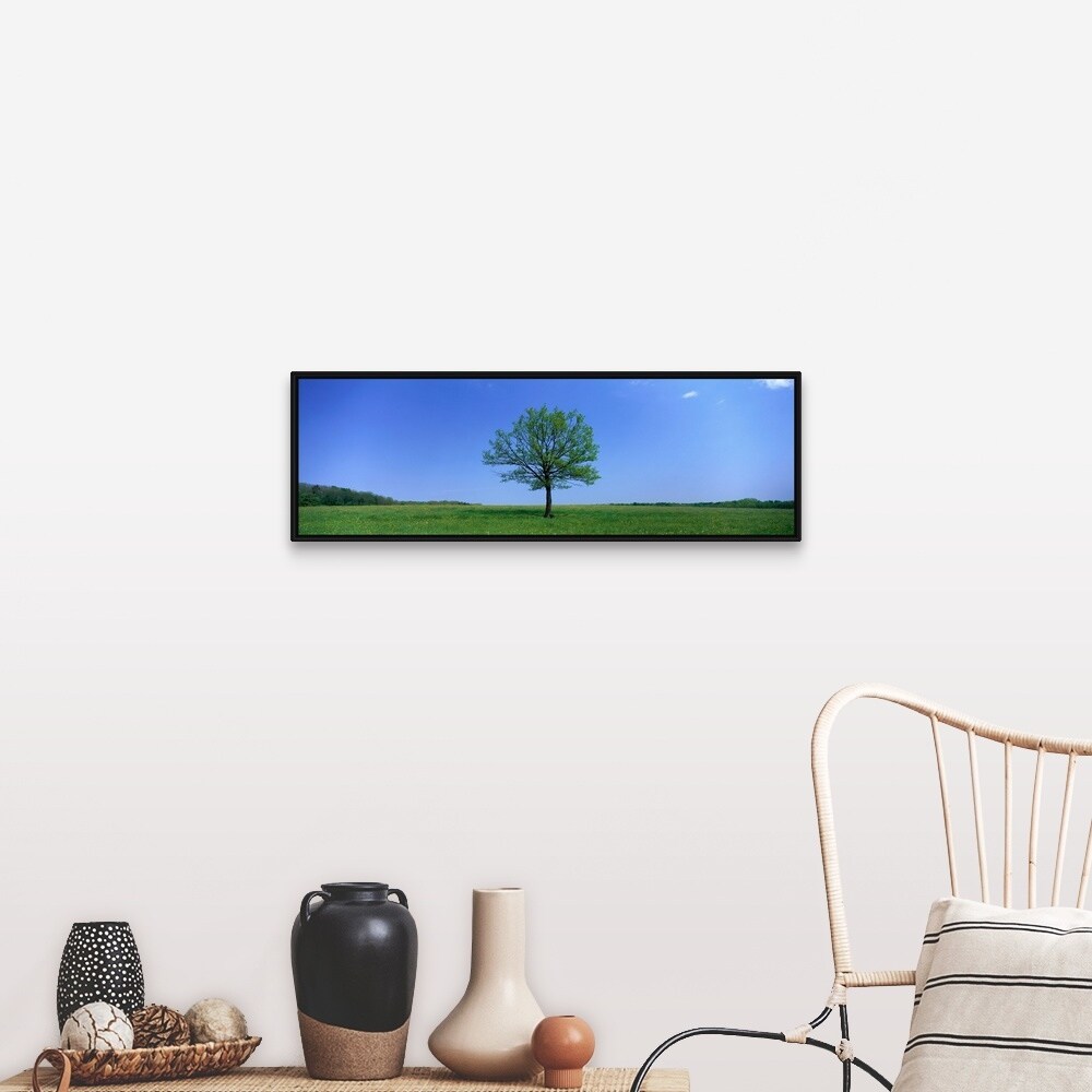 "Lone Tree in Pasture near Dijon France" Black Float Frame Canvas Art