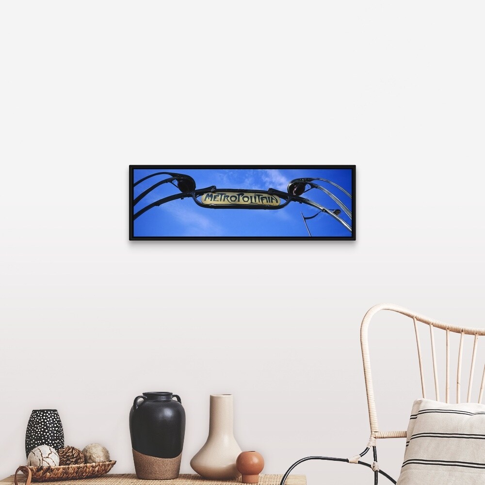 "Low angle view of a signboard of a subway station, Paris, France" Black Float Frame Canvas Art