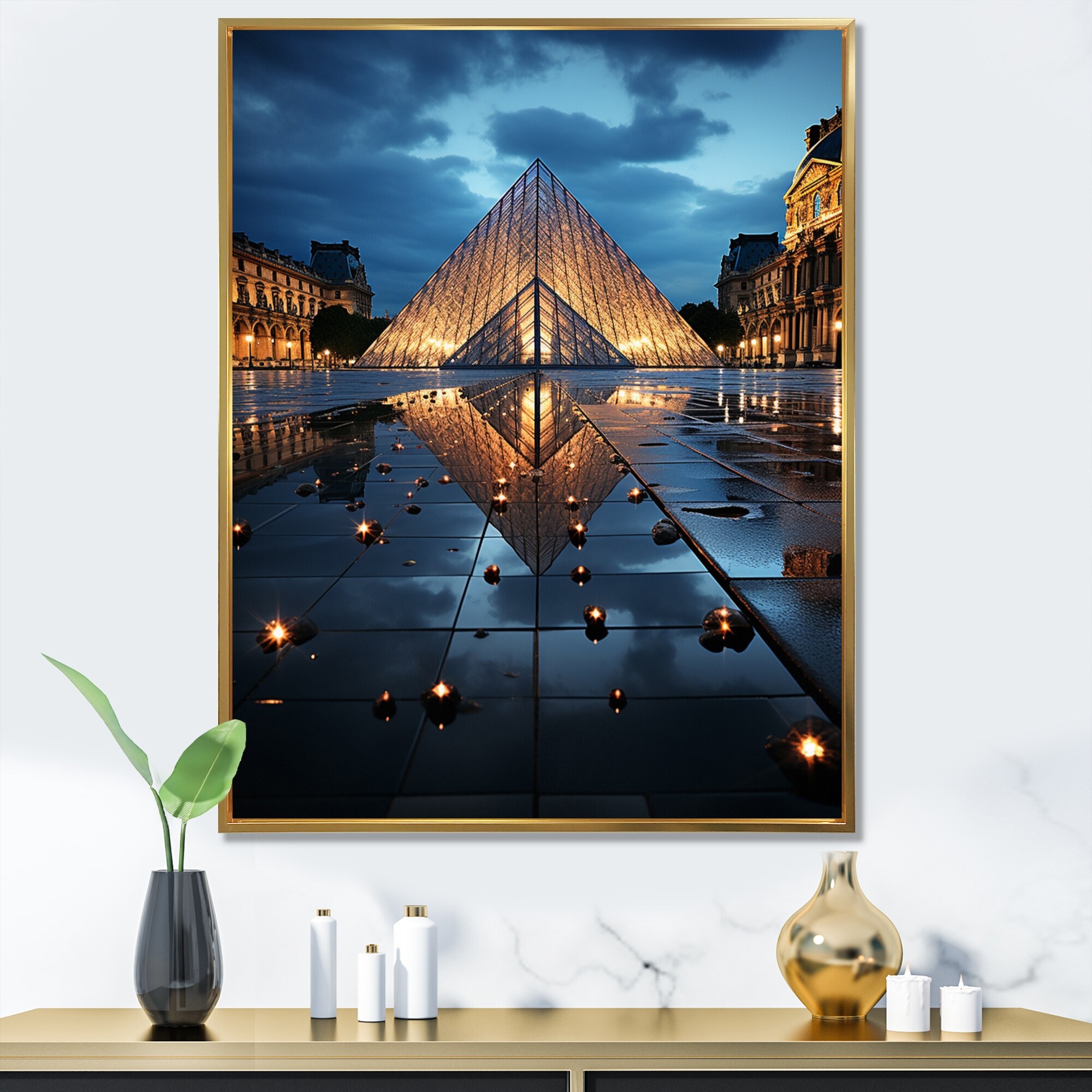 Designart "France Louvre Illumination III" France Framed Canvas Wall Art