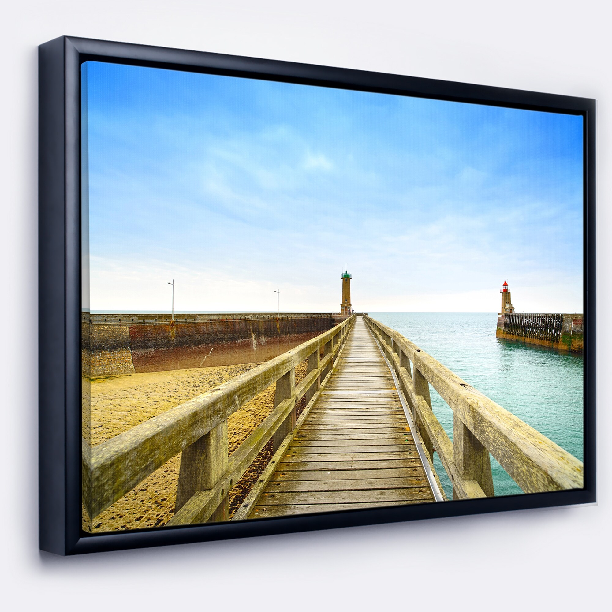 Designart "Pier and Lighthouse France" Seascape Framed Canvas Art Print