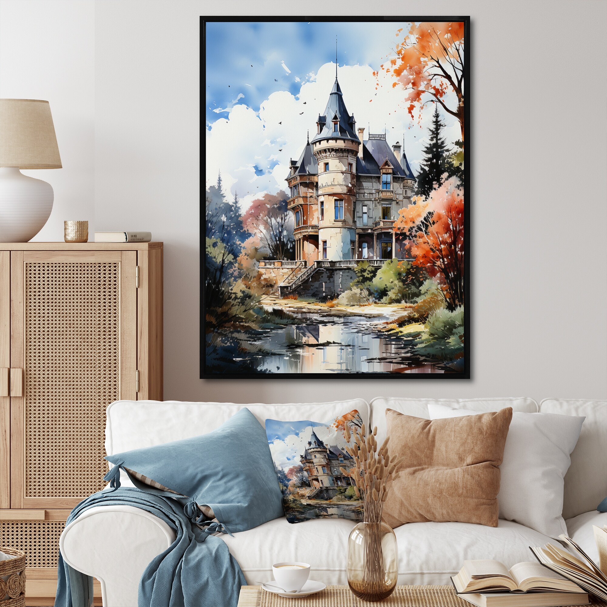 Designart "French Chateau in the Loire II" France Framed Canvas Art Print