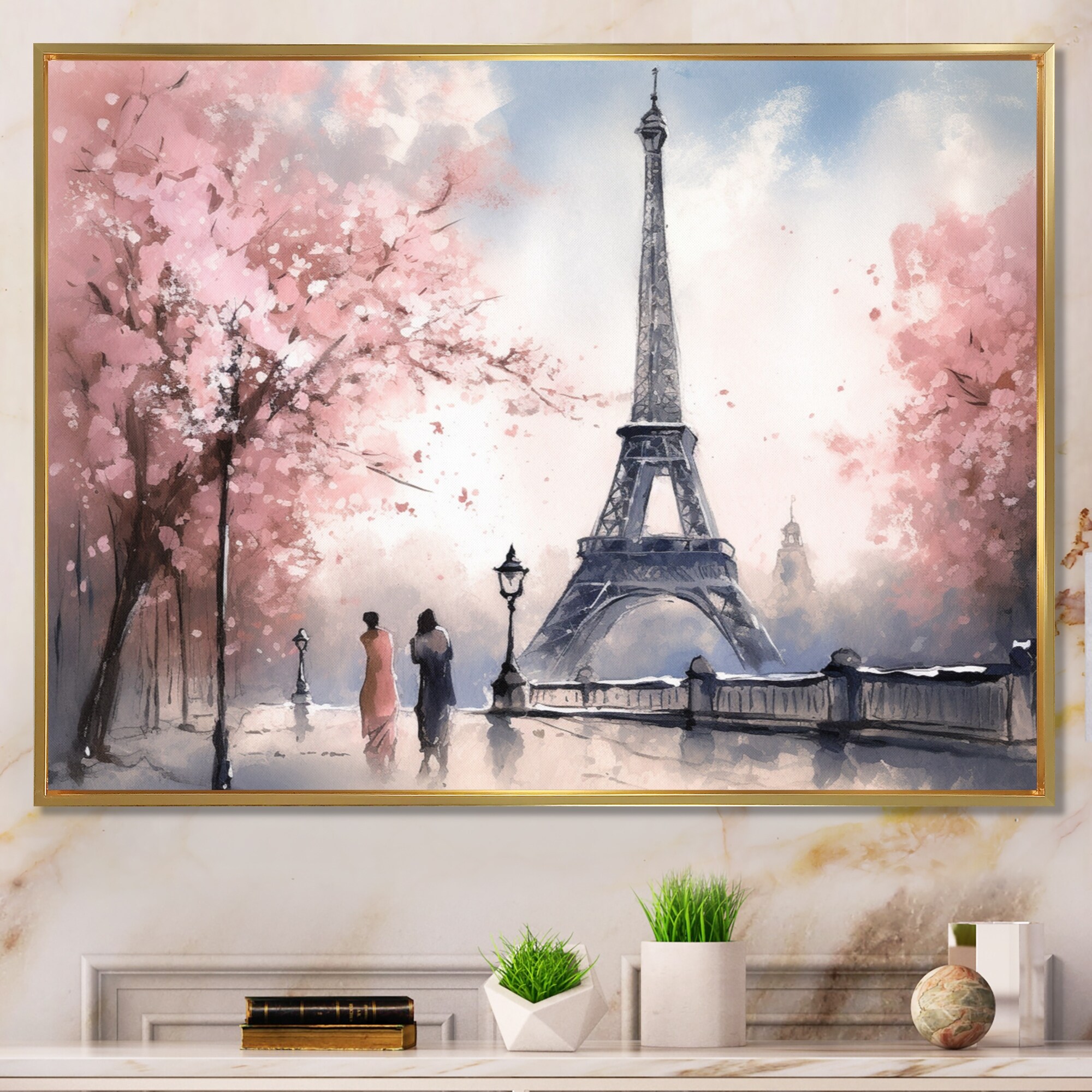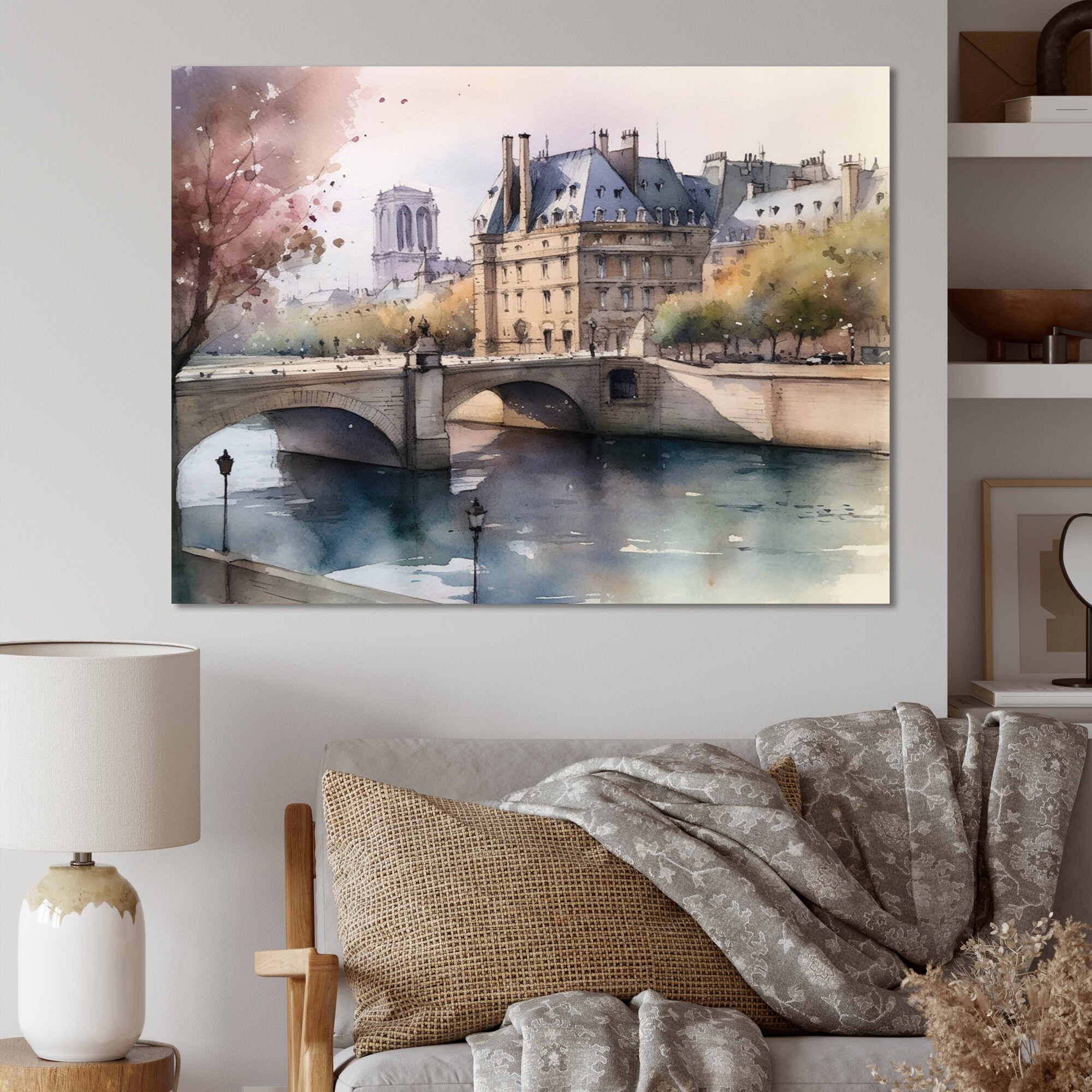 Designart "Watercolor Of Paris France Ii" City Paris Framed Canvas Wall Art