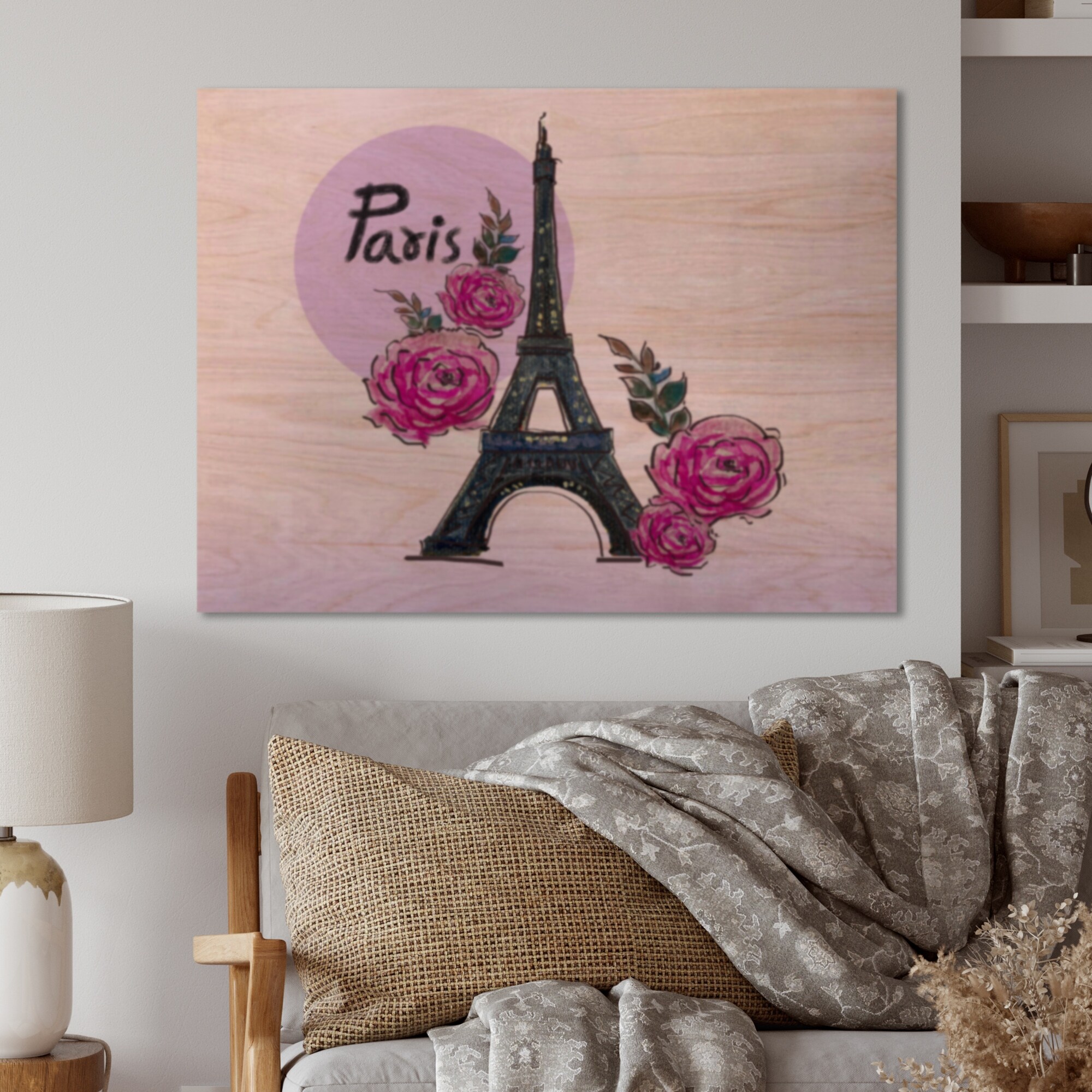 Designart 'Summer Paris France Eiffel Tower' Traditional Wood Wall Art Décor - Natural Pine Wood