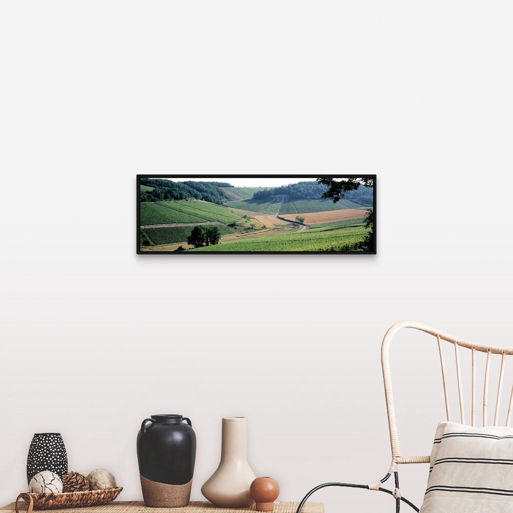 "Vineyards Chablis France" Black Float Frame Canvas Art